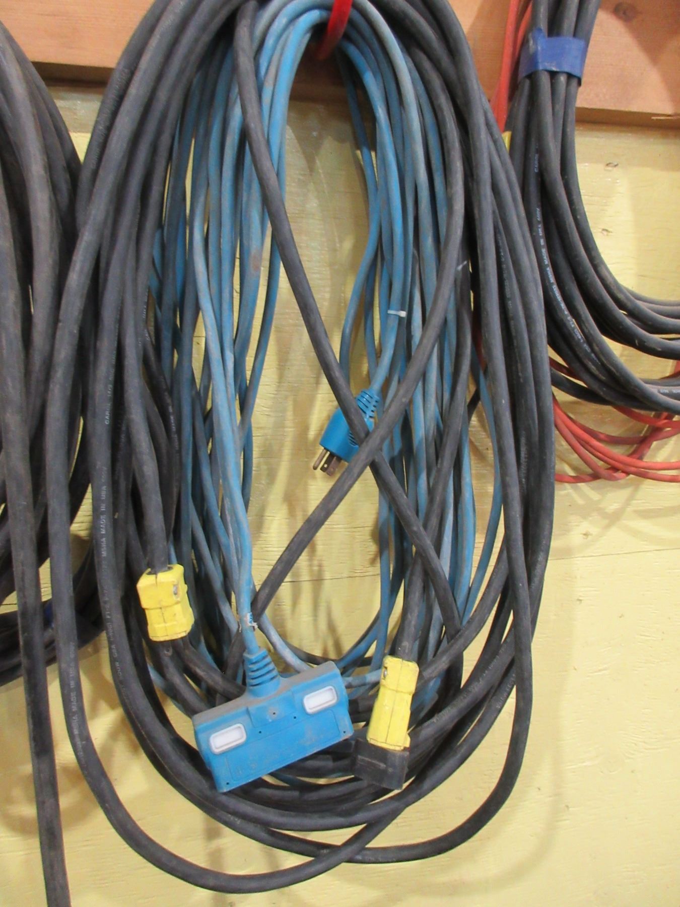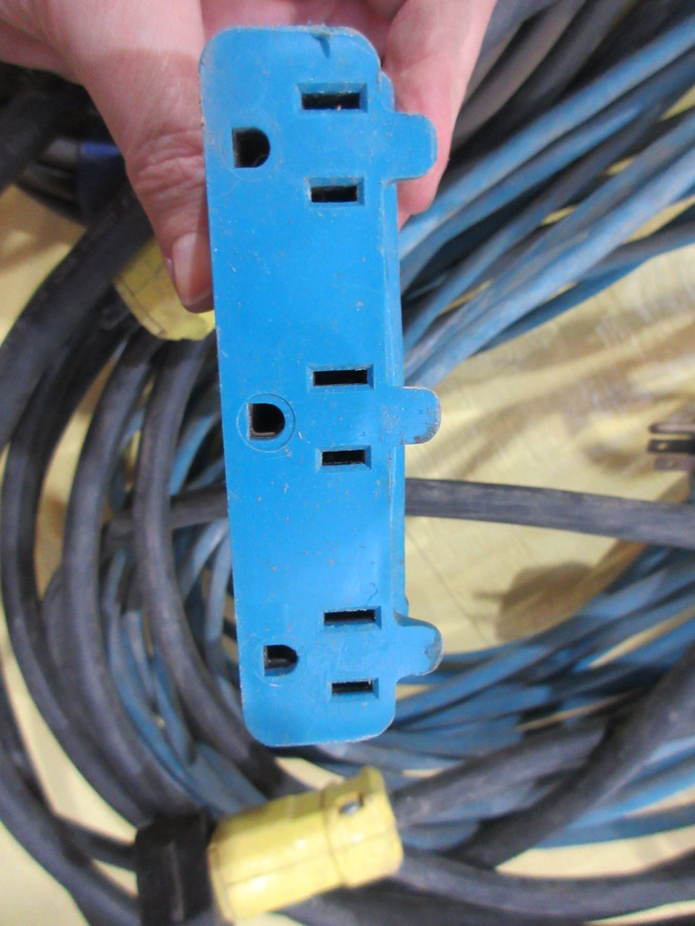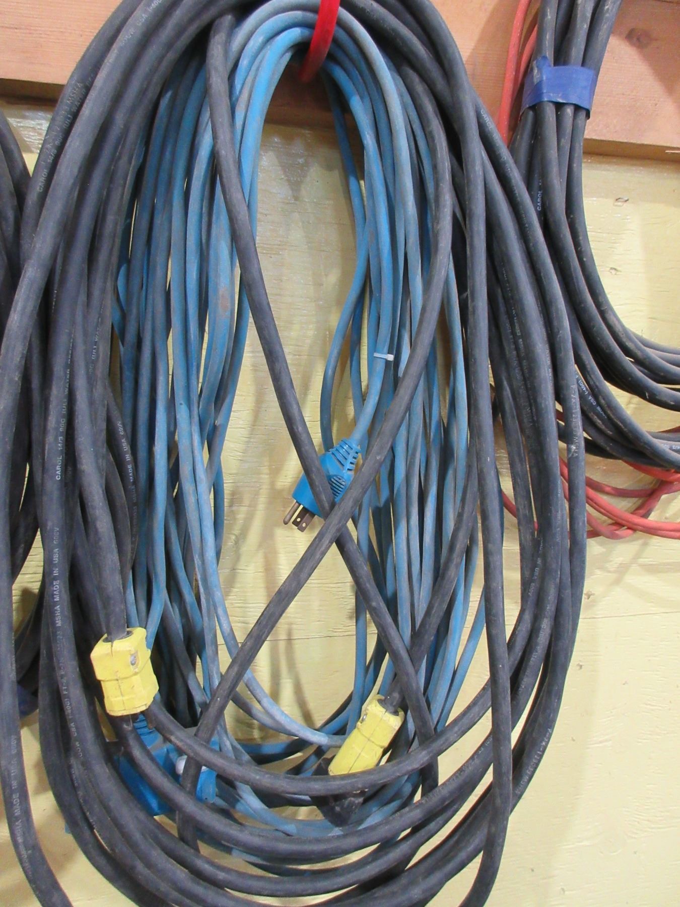 HEAVY DUTY BLACK EXTENSION CORD (APPROX. 50') & BLUE EXTENSION CORD (APPROX. 50')