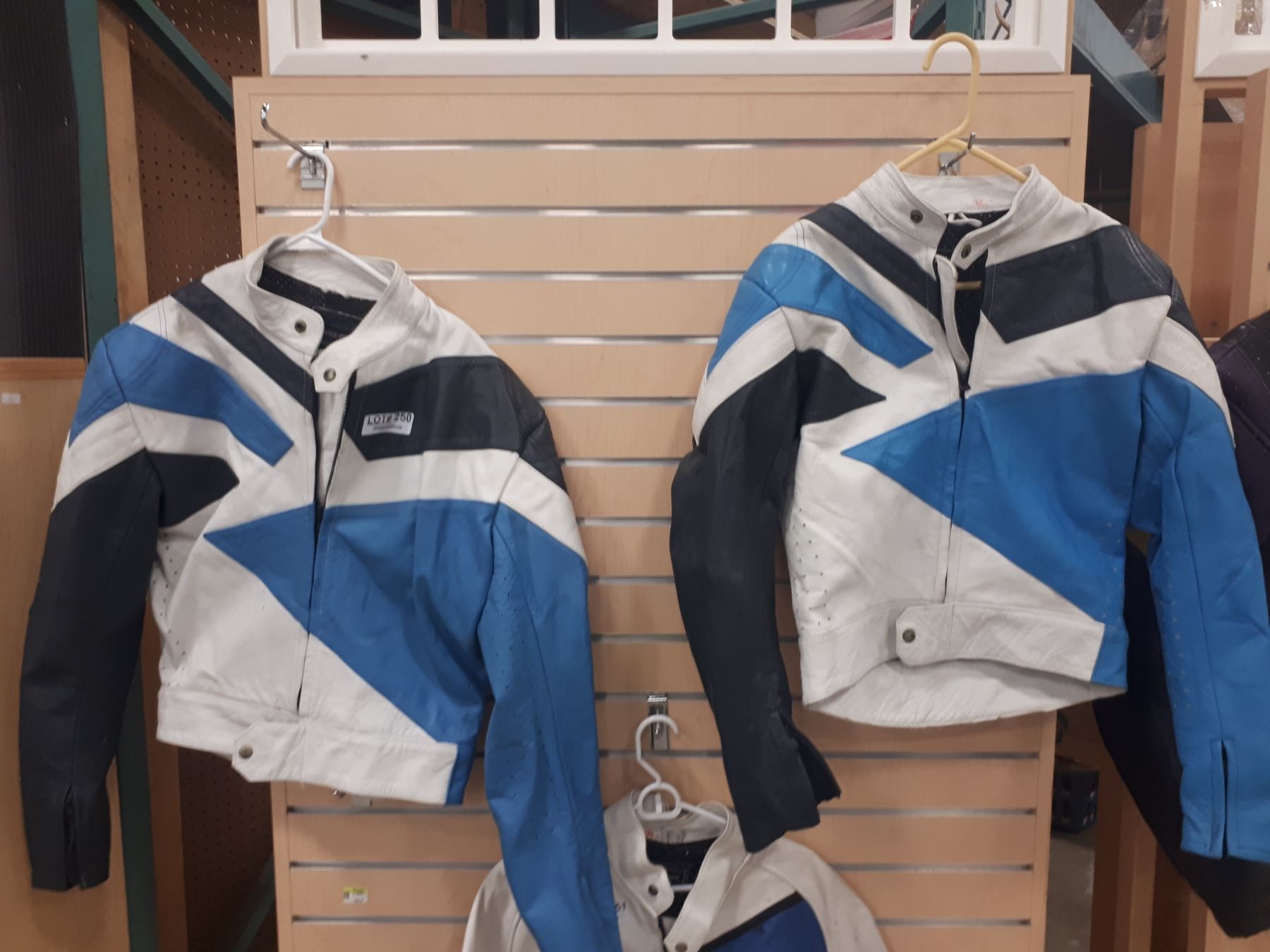 HIS AND HERS PAIR OF MATCHING COW HIDE LEATHER JACKETS, XL, M SIZE