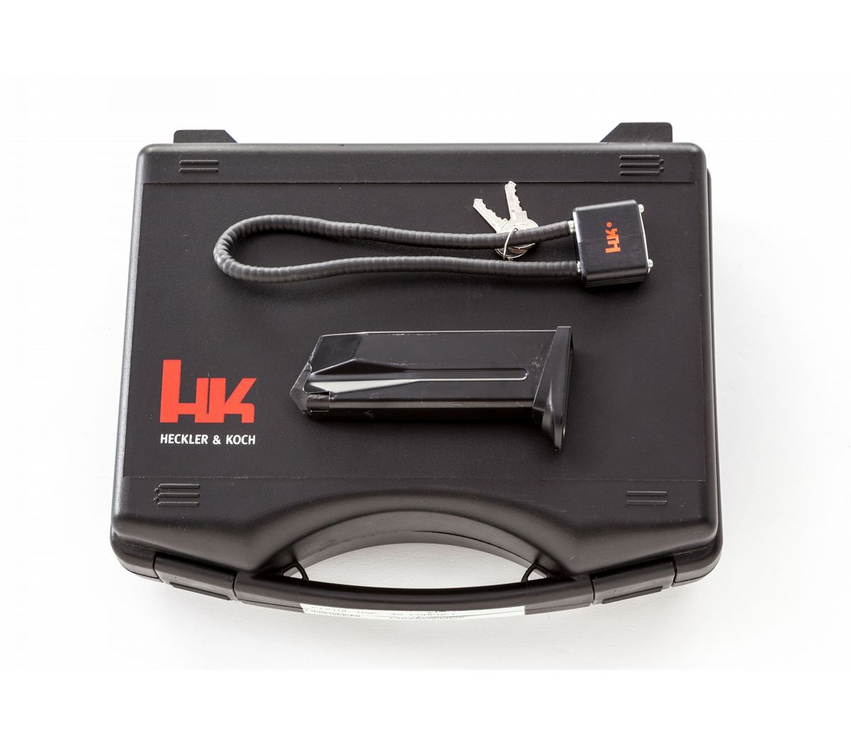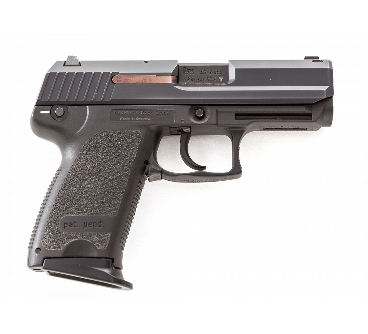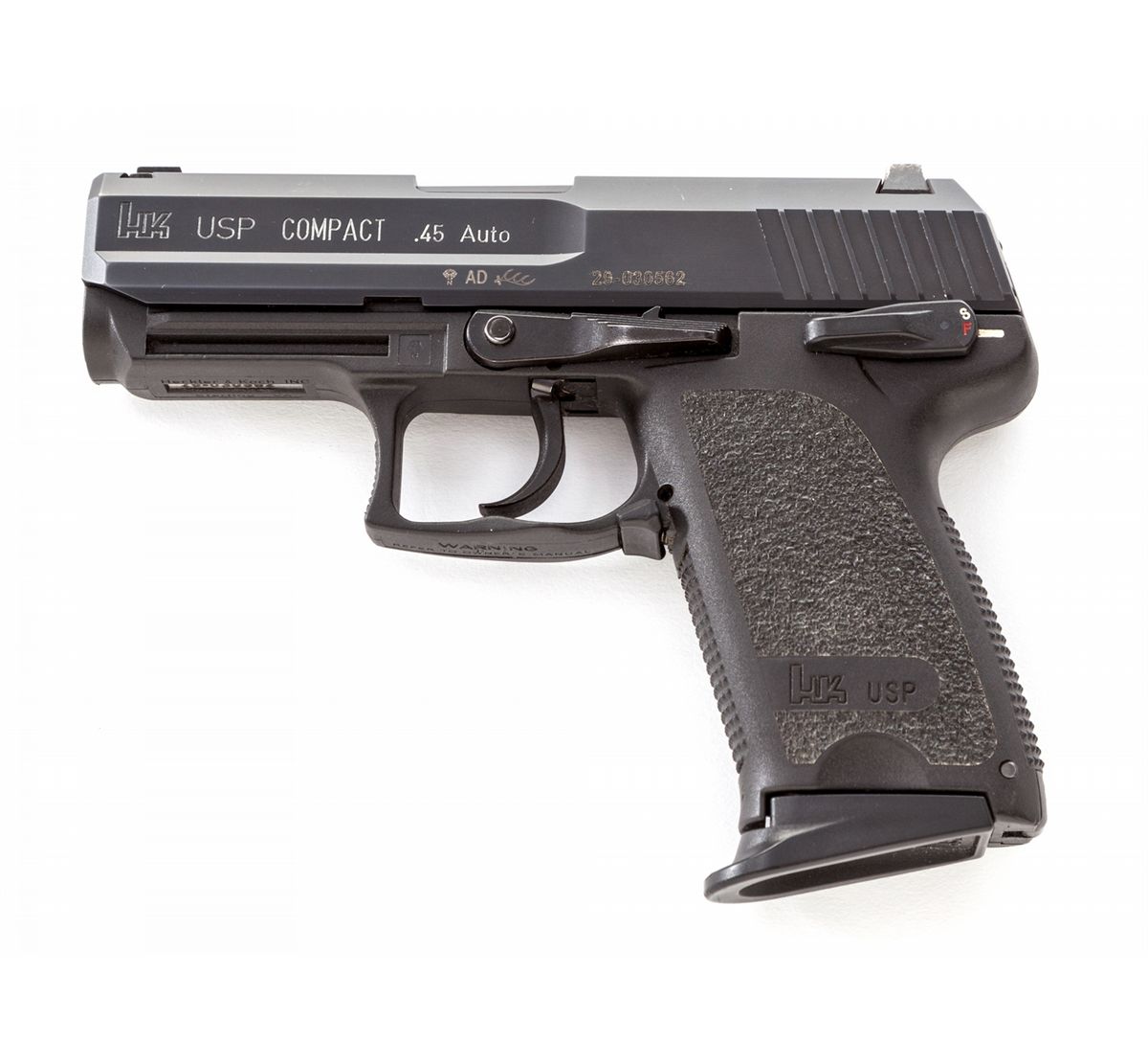 HK USP Compact Semi-Automatic Pistol, #29-030562, .45 Auto cal., 3-1/2'' barrel, matte finish, with two 8-round magazines, in original carrying case with paperwork and lock. Condition is excellent, appearing near new with just slight handling marks. Est.: $600-$800. (Modern)