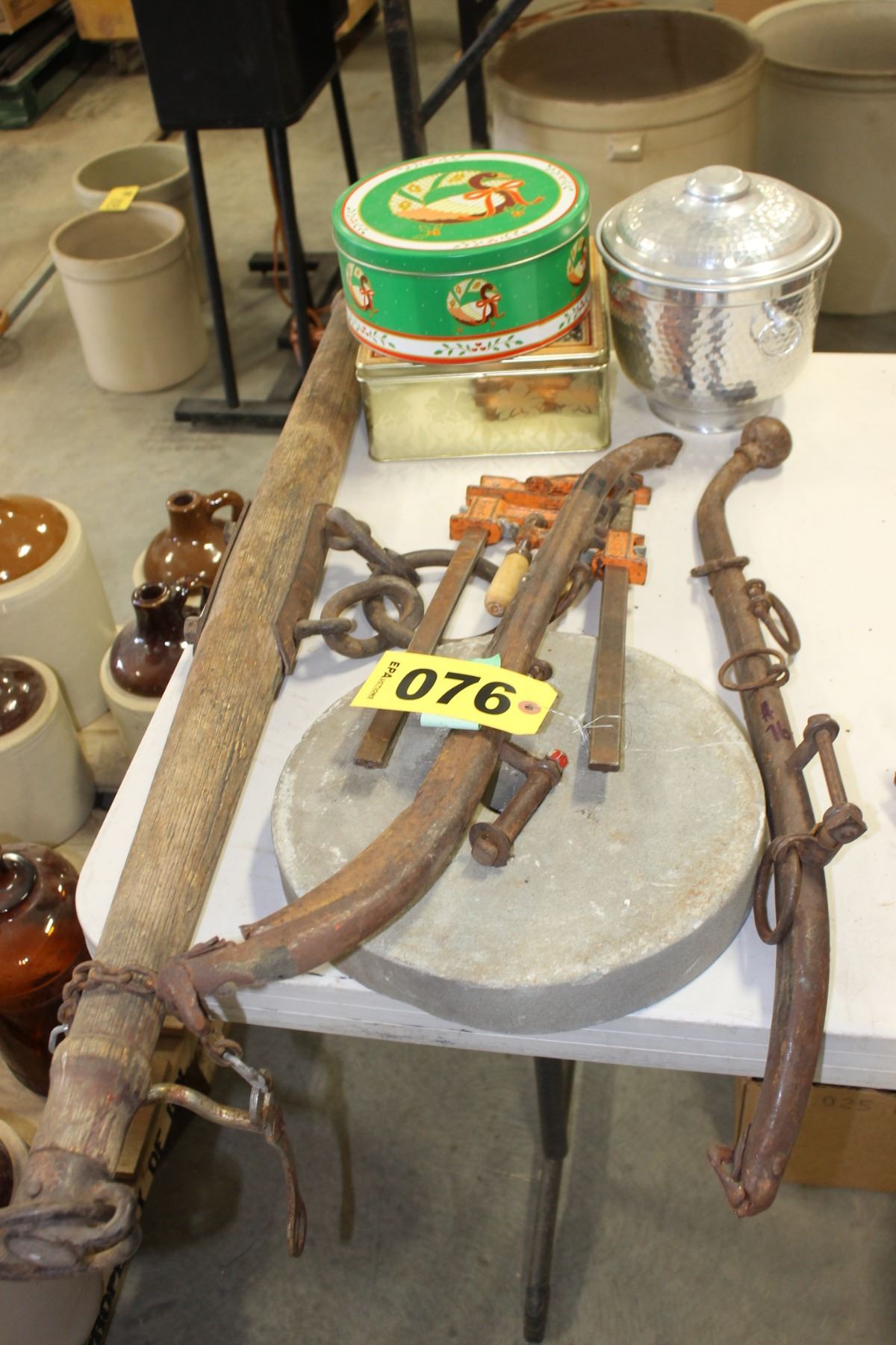 HORSE COLLARS, STONE GRINDER, CLAMPS & HANES