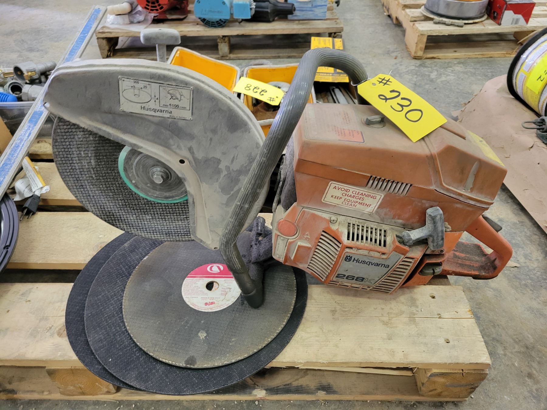 HUSQVARNA chop saw; extra blades (running)