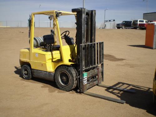 2001 HYSTER H50XM 4450lb. FORKLIFT, s/n A177B37253U: 4 CYLINDER LP GAS ENGINE, 3 STAGE MAST, SIDESHIFT, 42in FORKS, 189in. LIFT HEIGHT