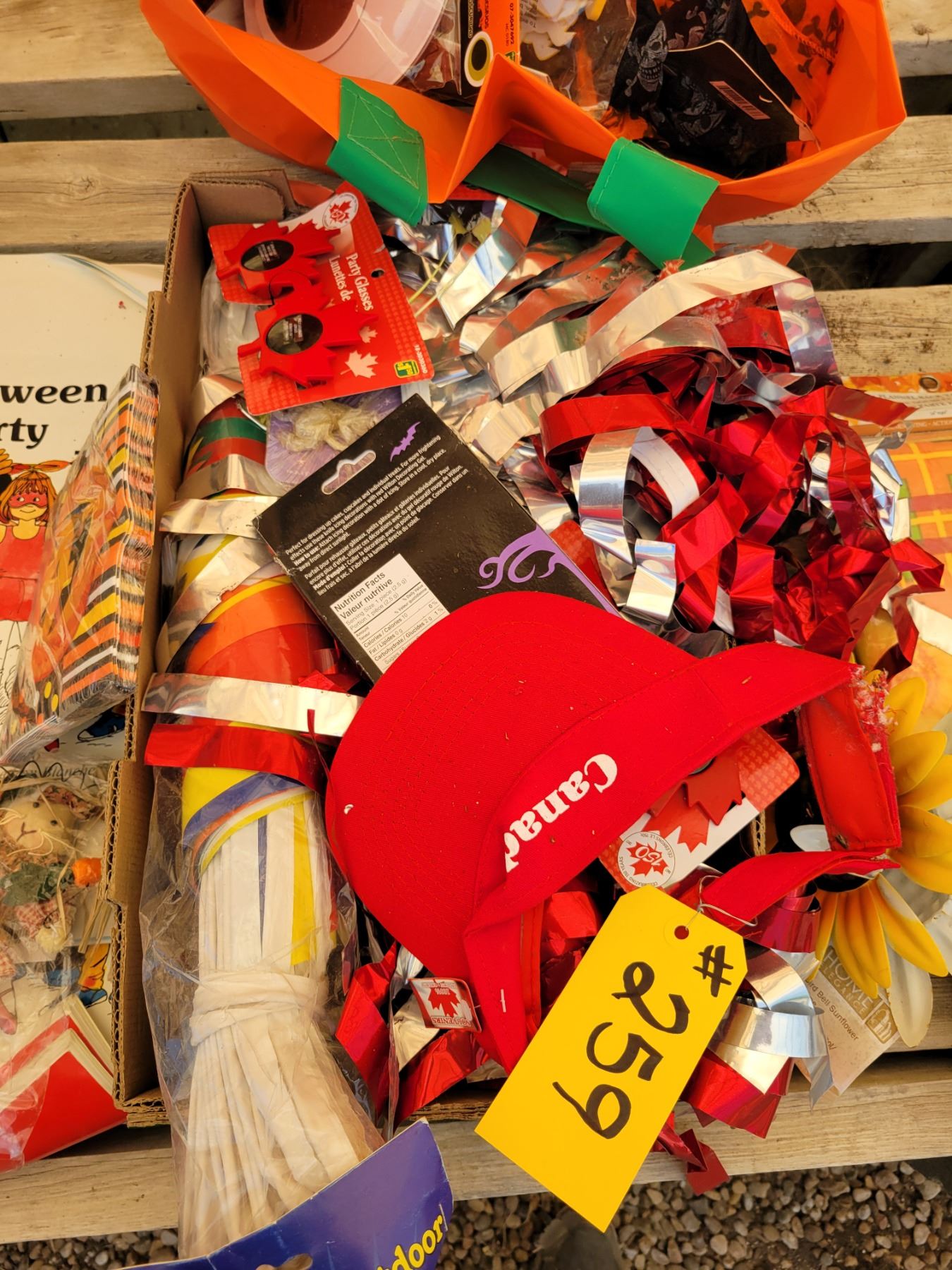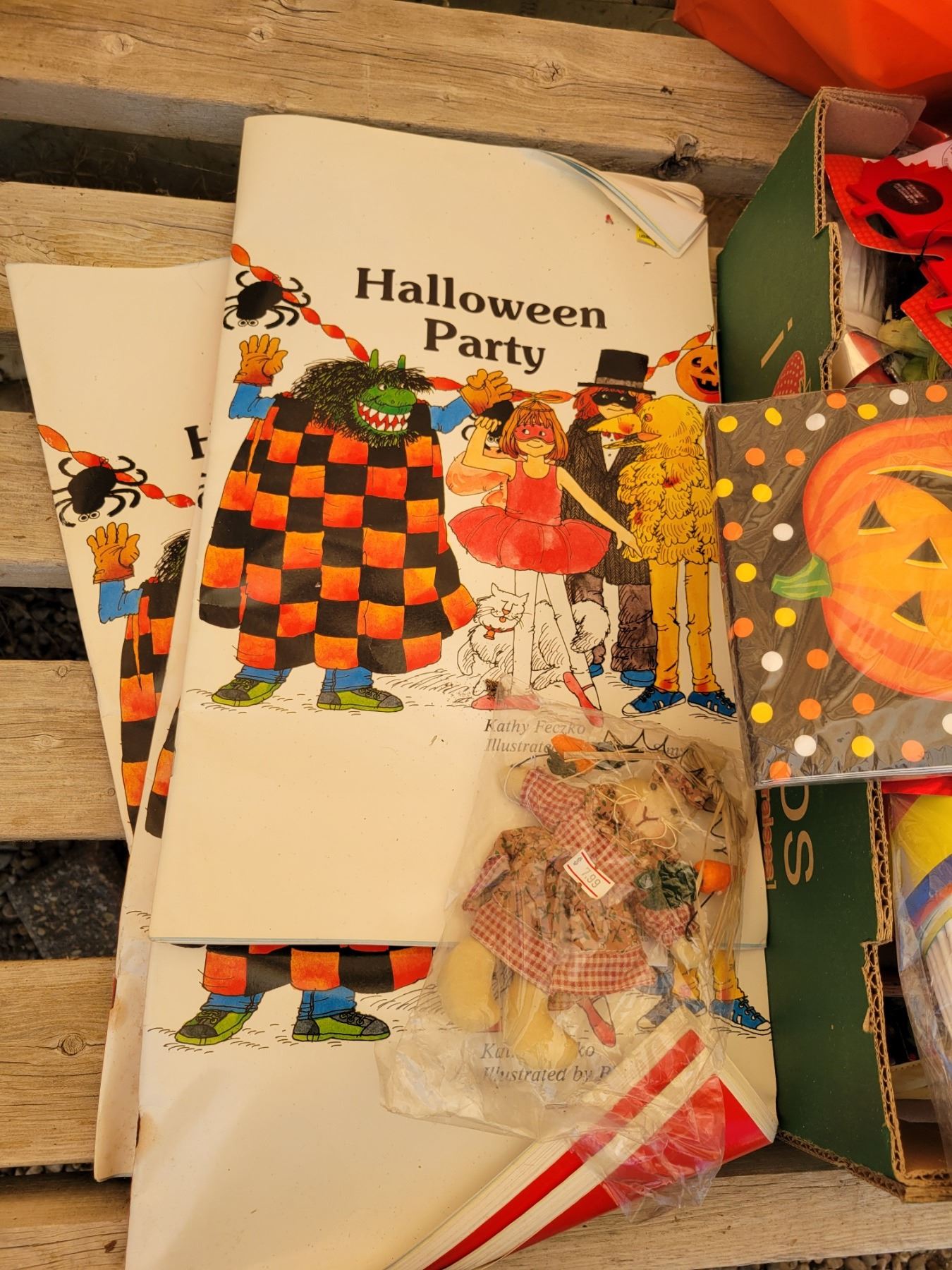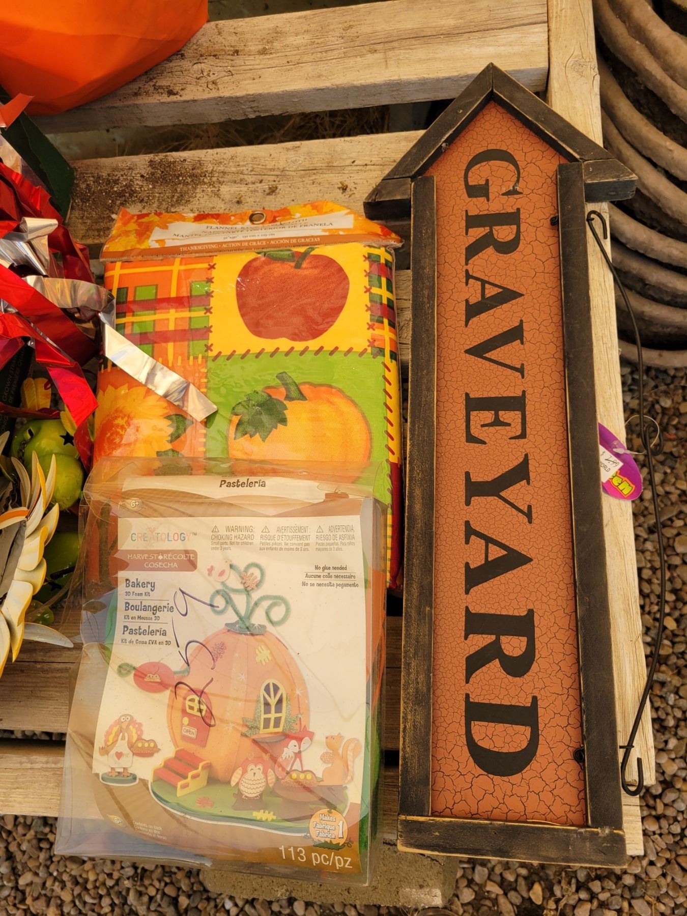 Halloween decorations, sign, table cloth, picks, etc.