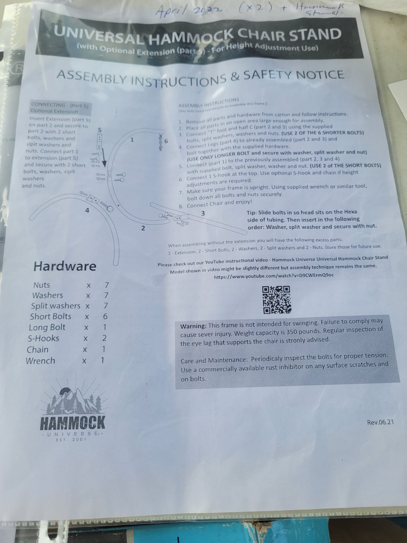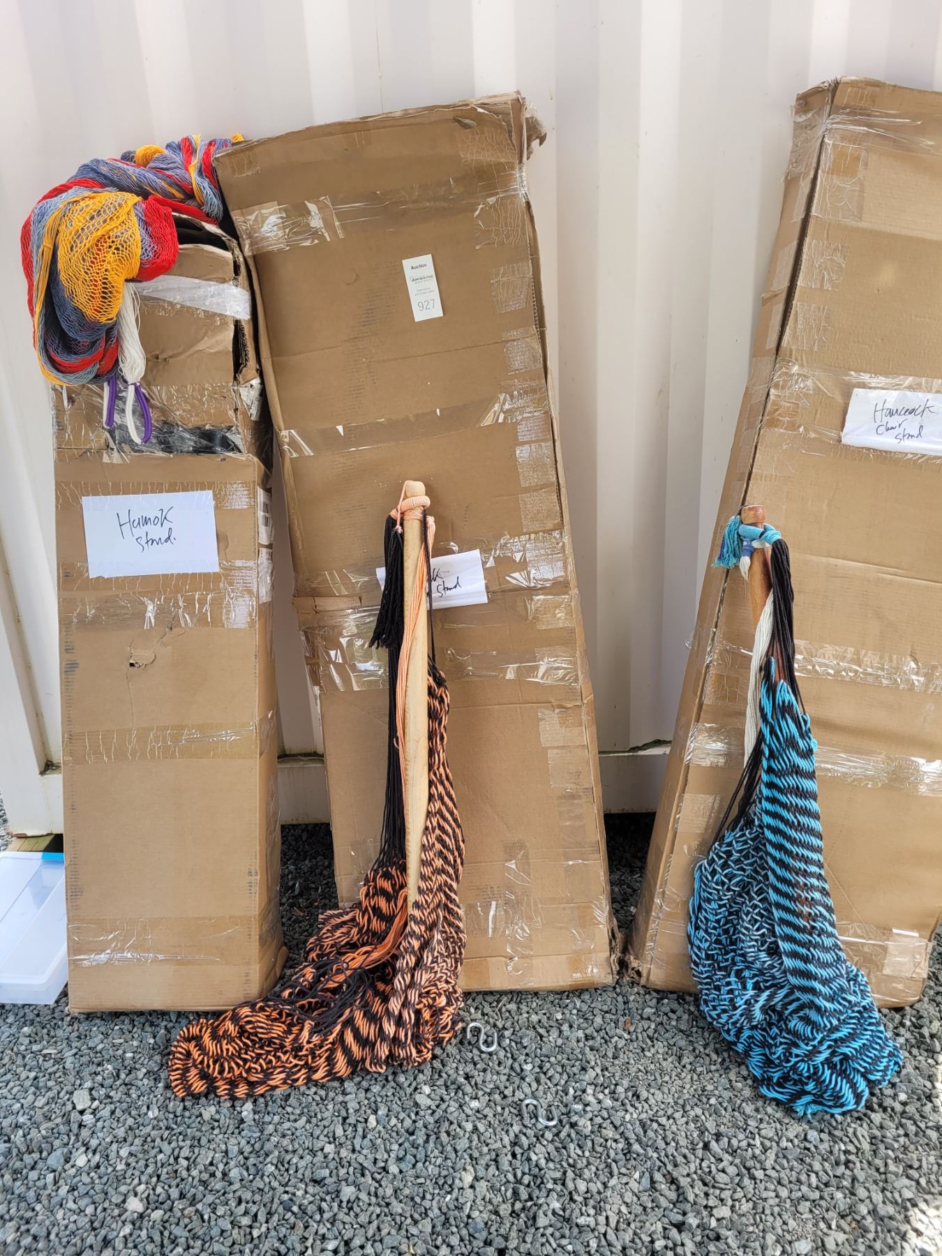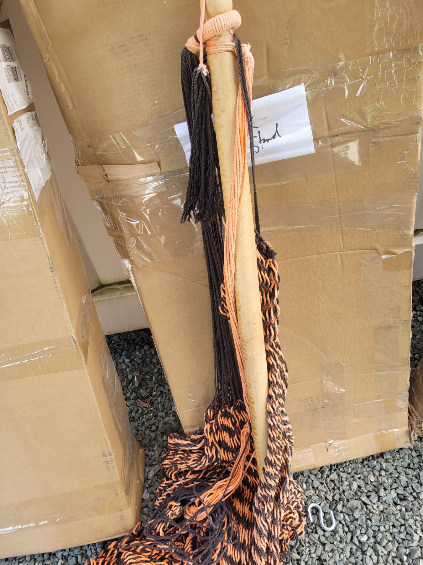 2 chair hammock stands and one hammock, heavy. Pickup at 11 am
