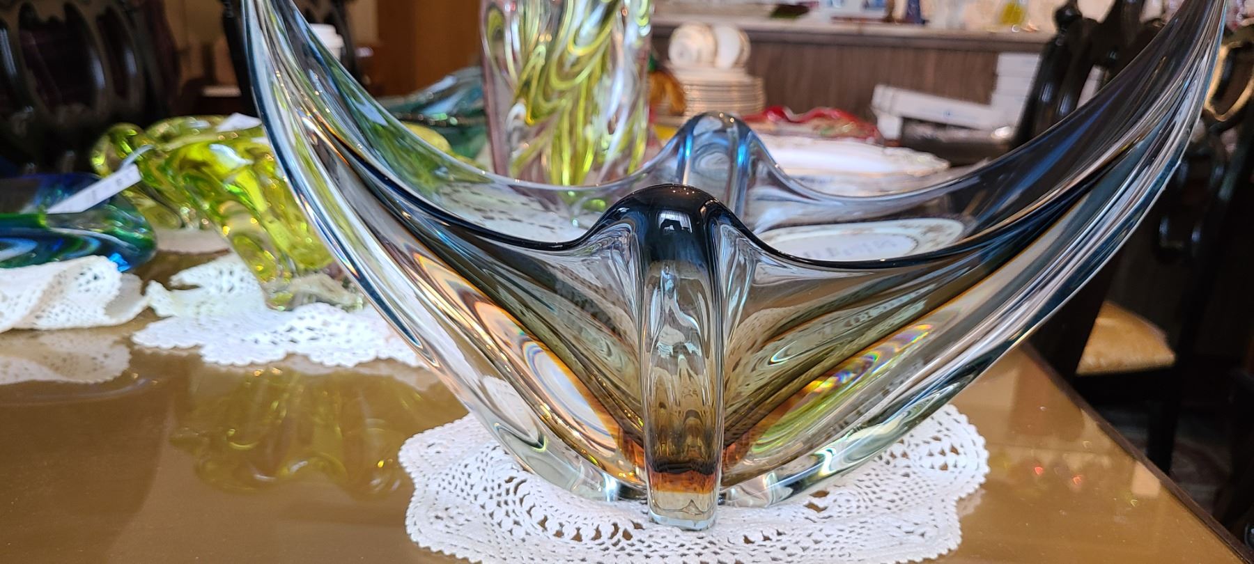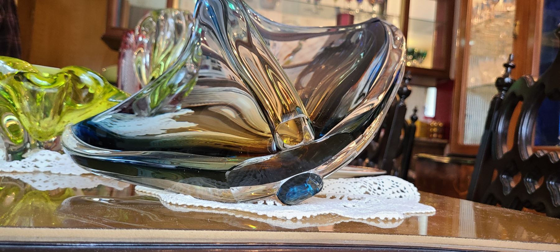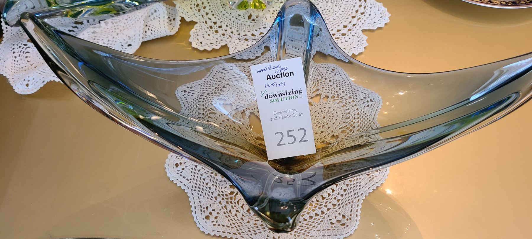 Gray, hand blown glass decor 15x9x9. Pick up 9-10