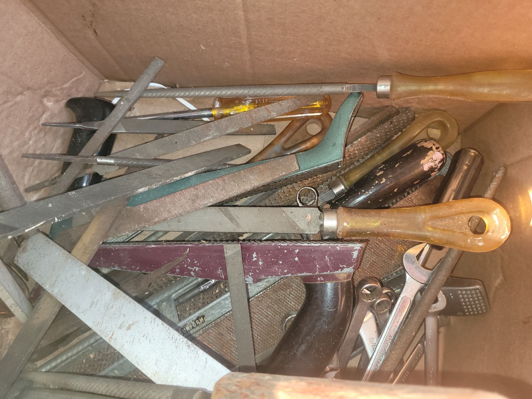 2 x Table Vise, ratchets, files and more. T Pickup at 11 am