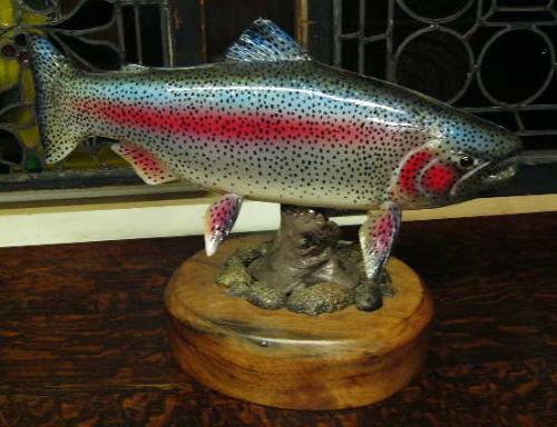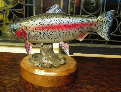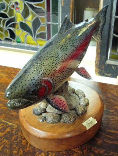 Hand carved wood rainbow trout by Michael Scott 29" long- won first place in numerous world fish carving championships