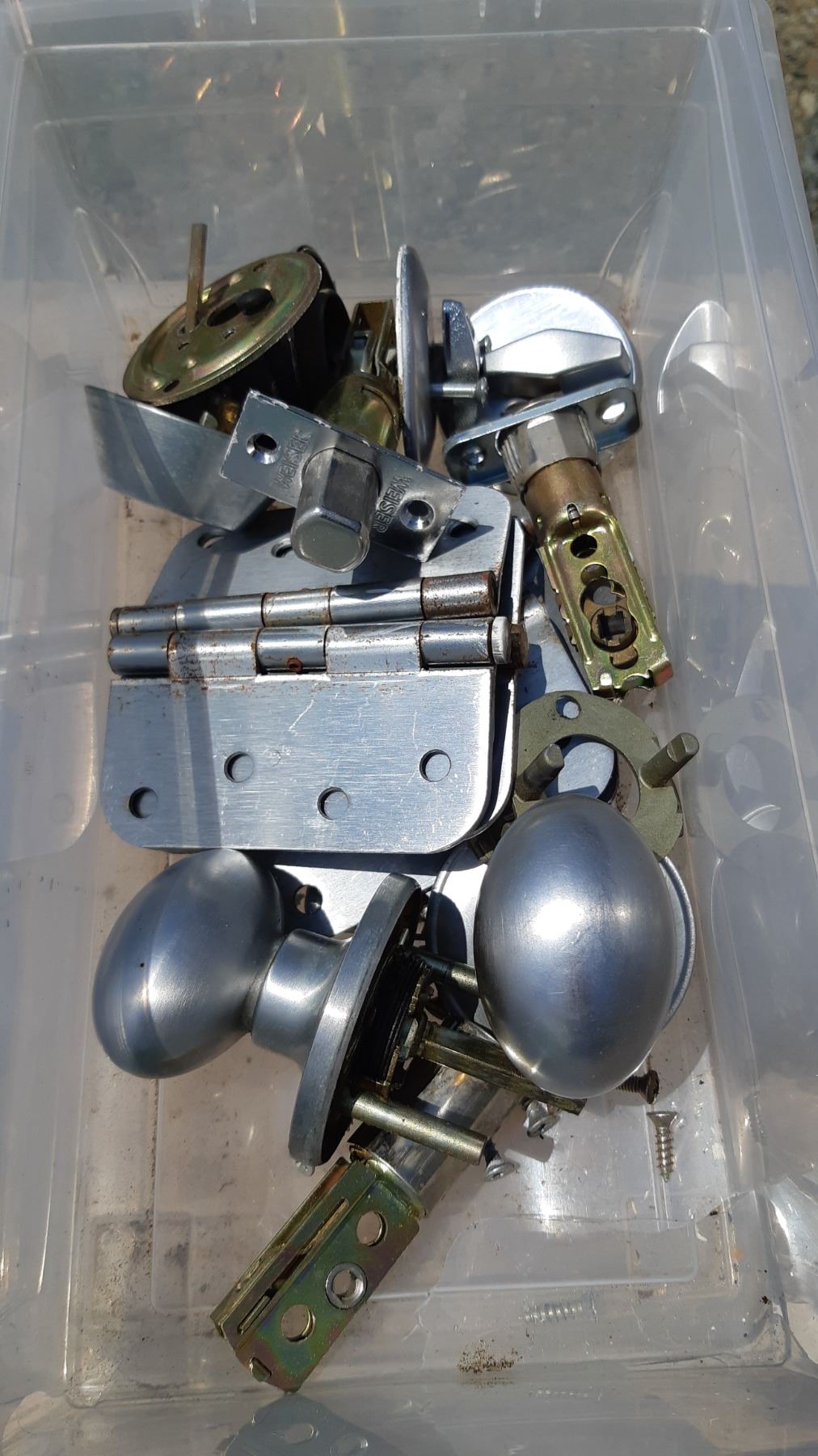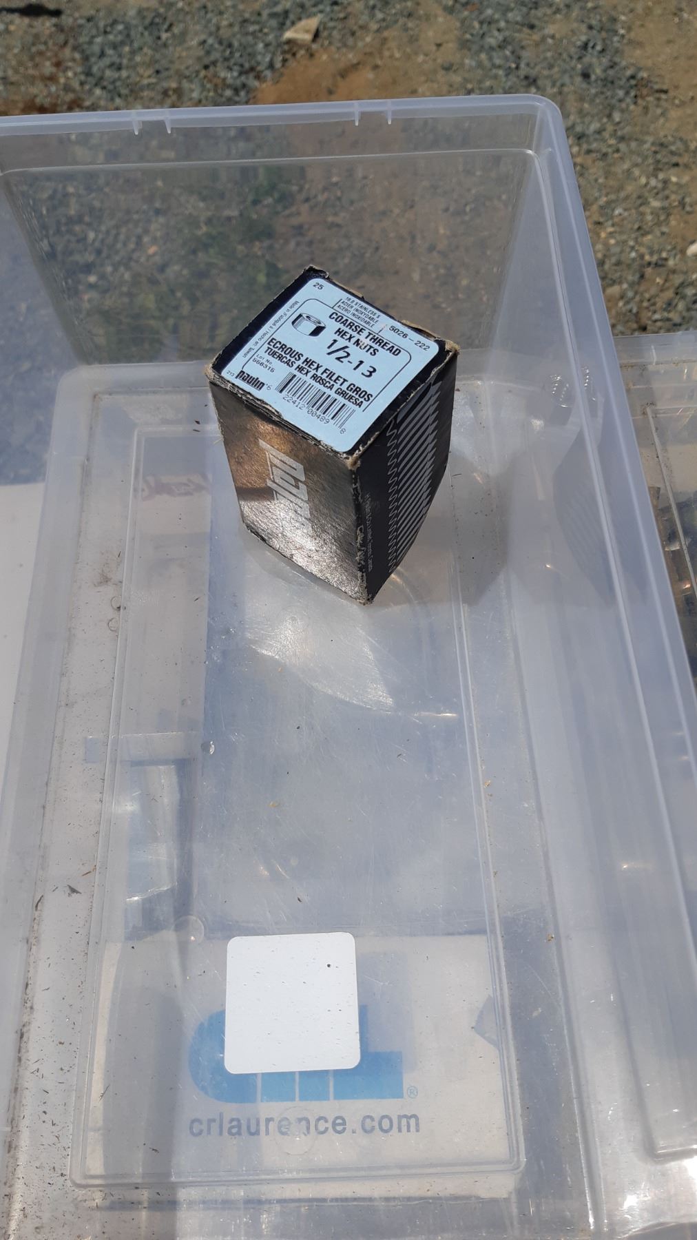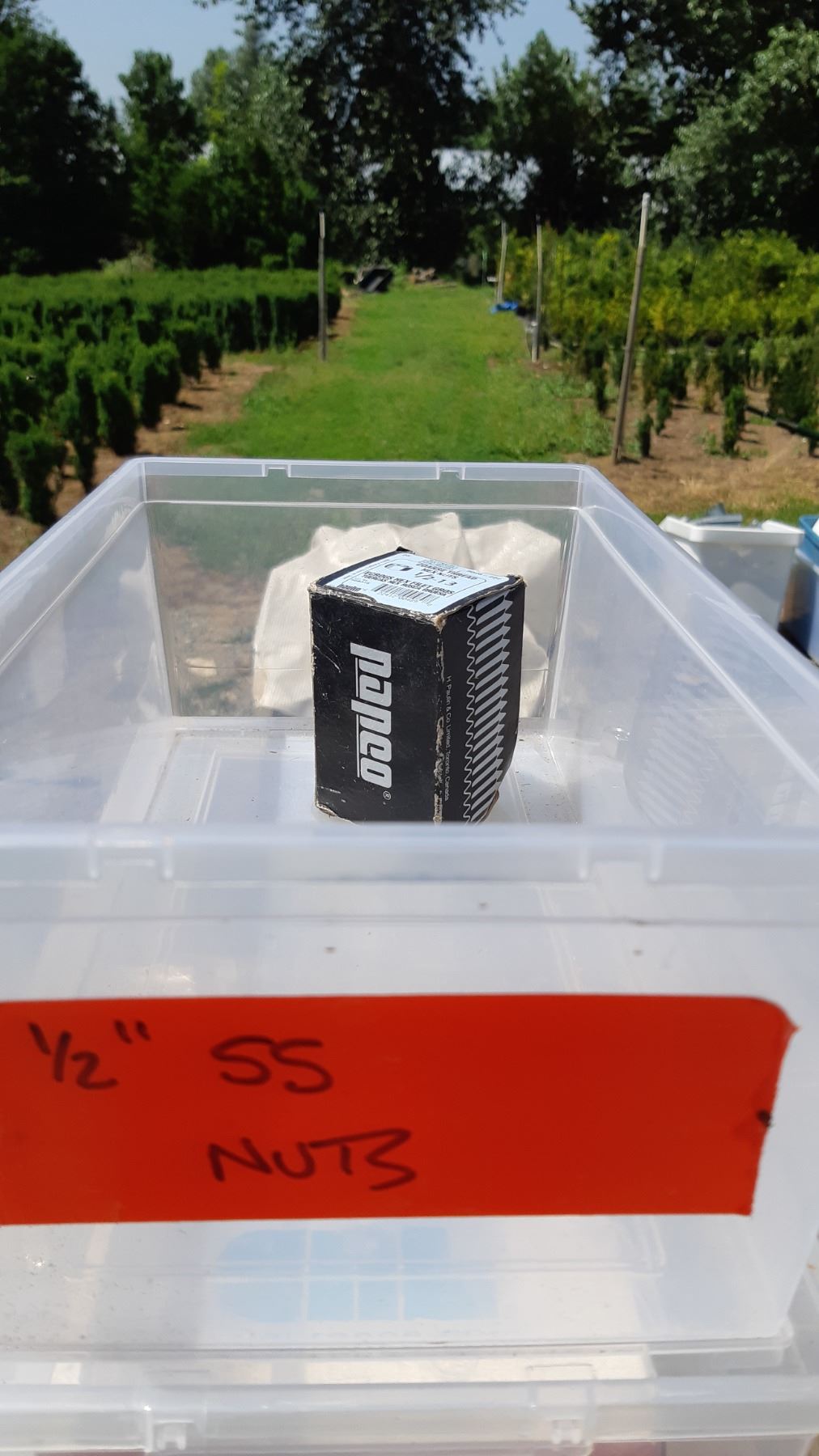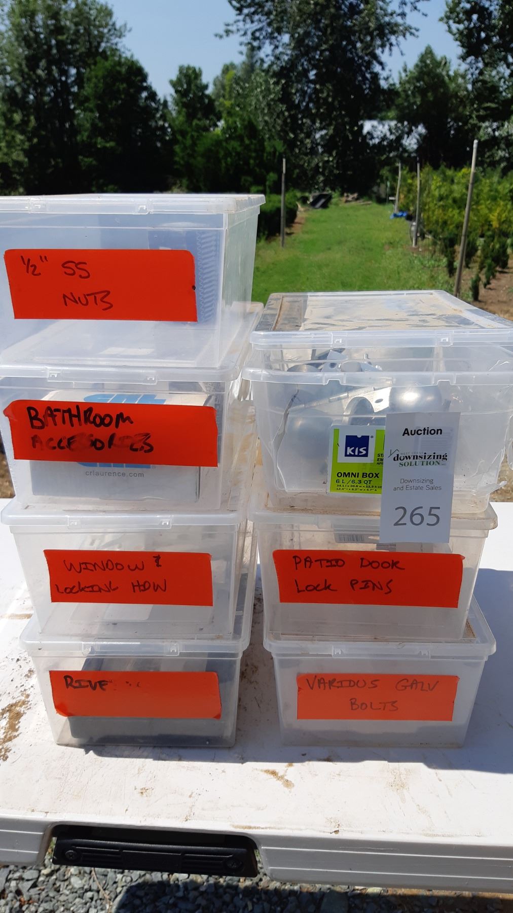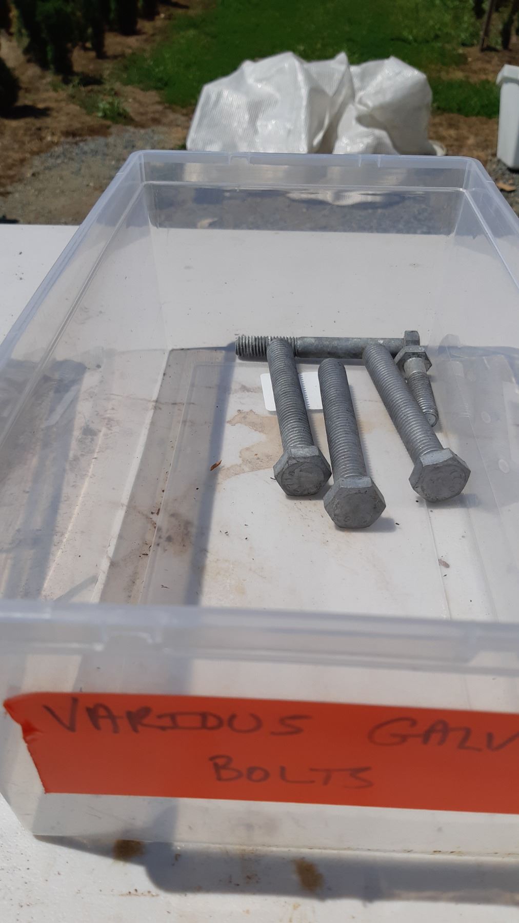 Nuts, lock pins, bolts and more 7 containers Pickup at 11 am