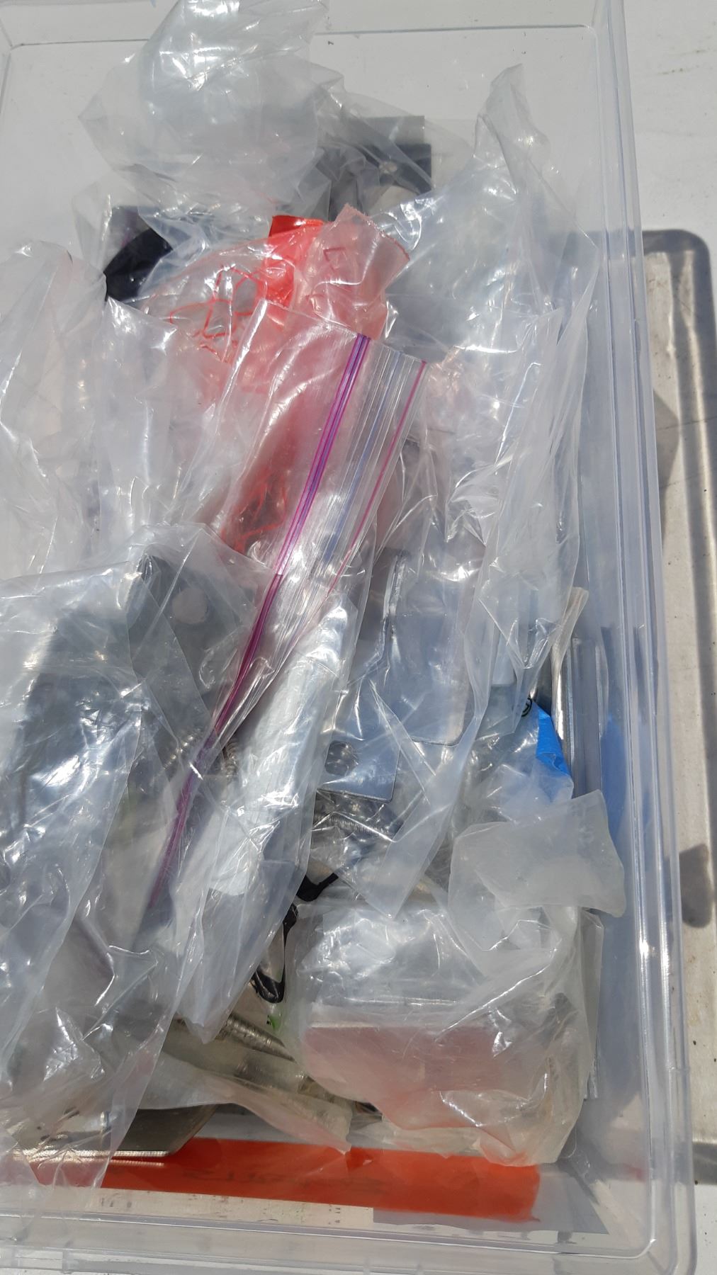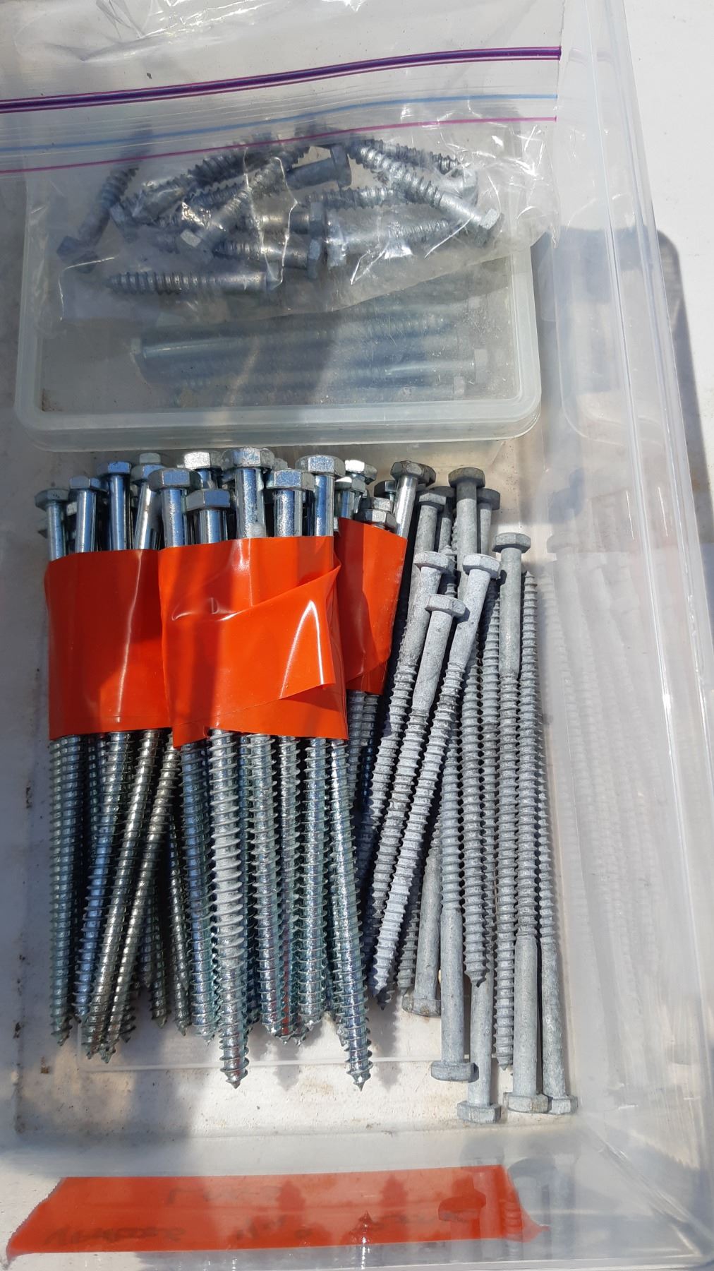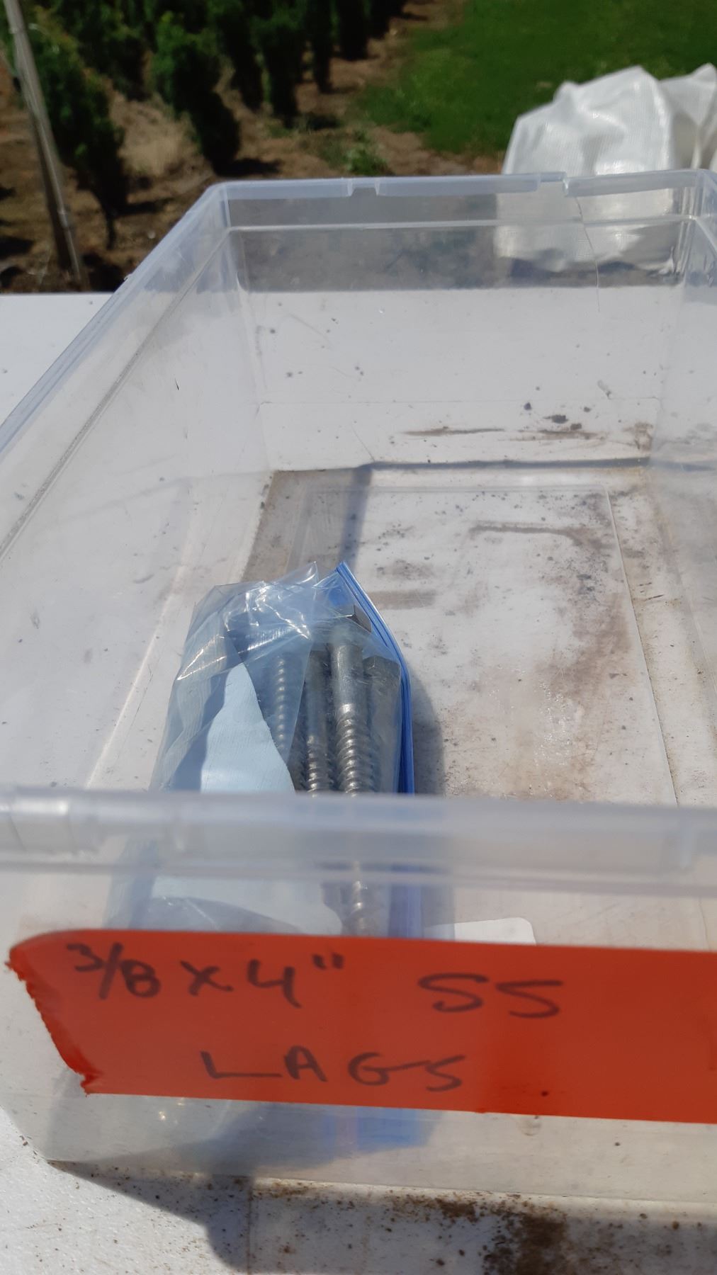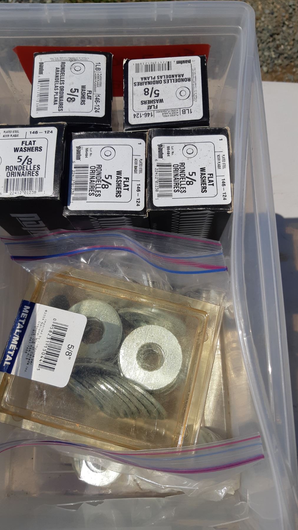 Door strikes, nuts, tape lags & more 6 containers. Pickup at 11 am