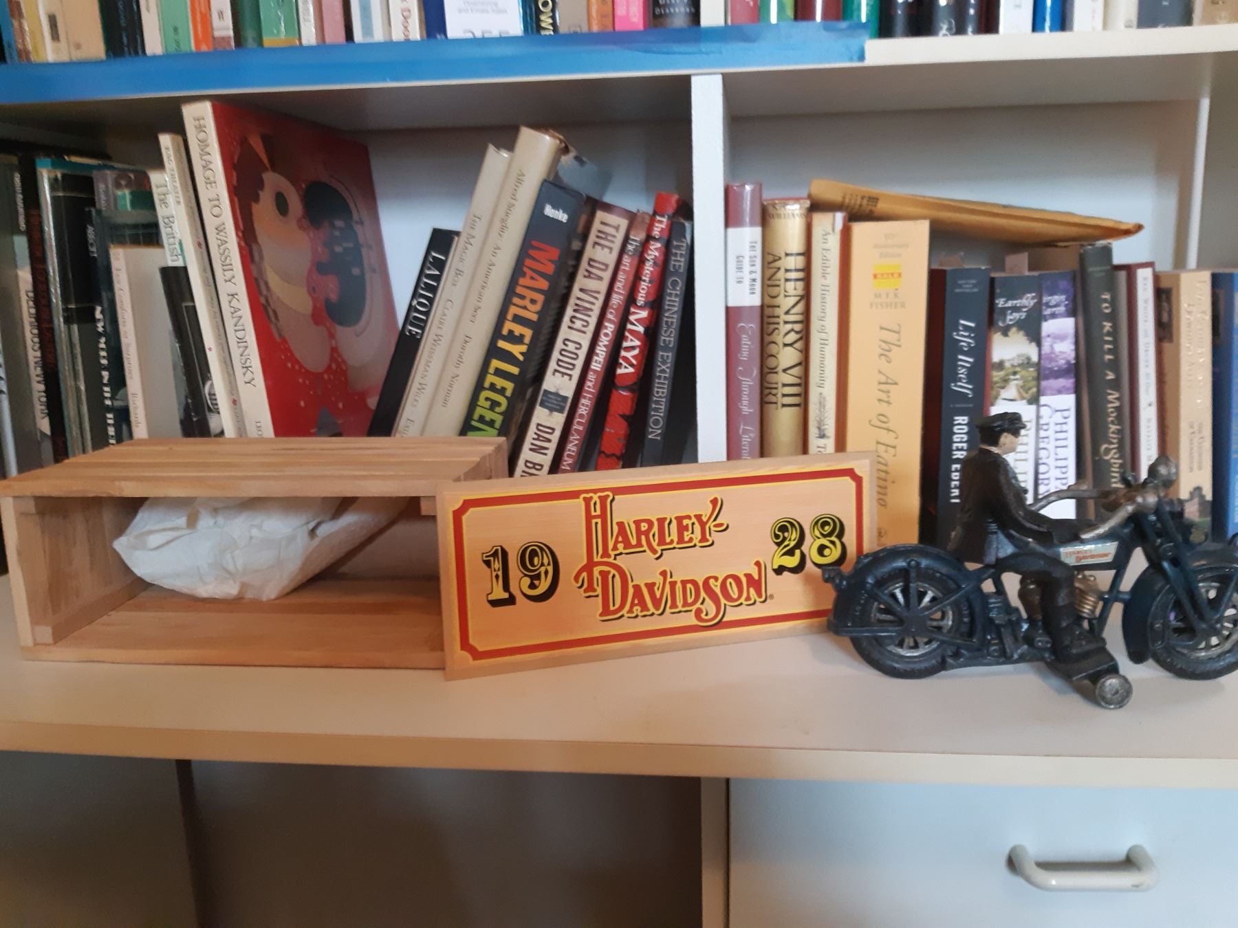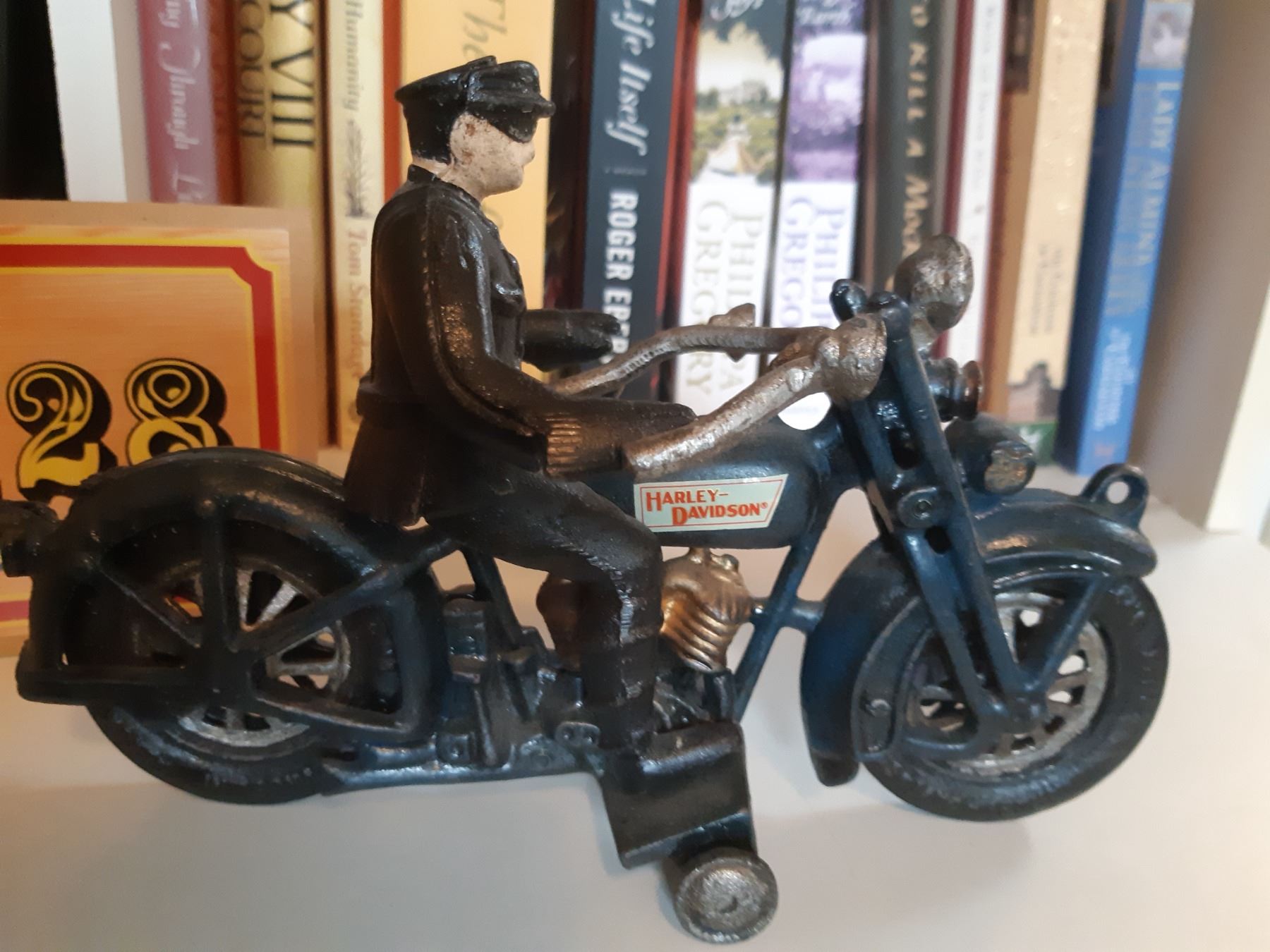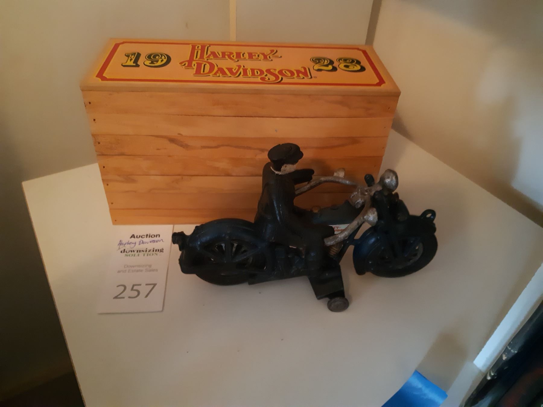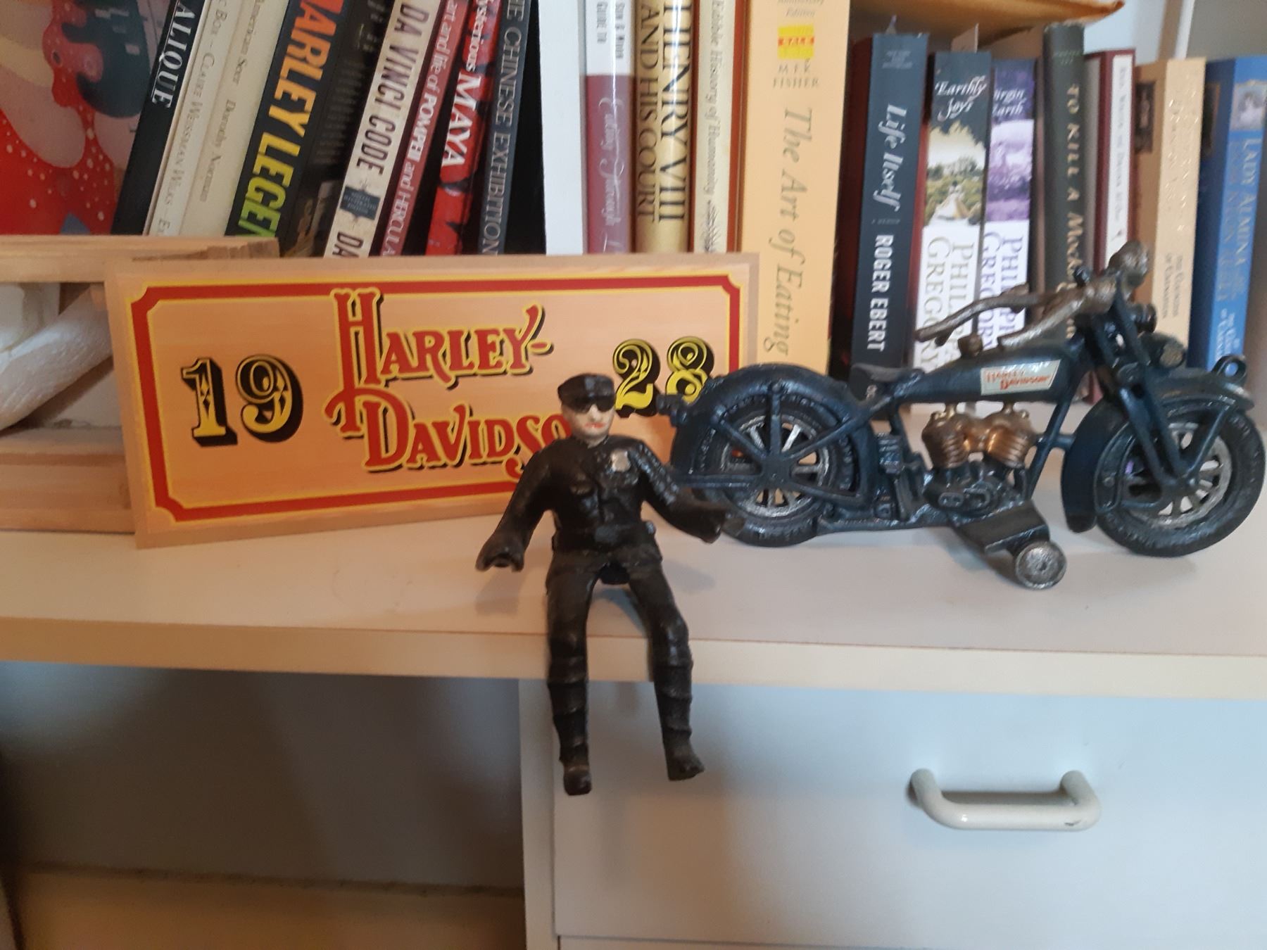 Cast iron man on bike comes with crate. Pickup at 12 pm