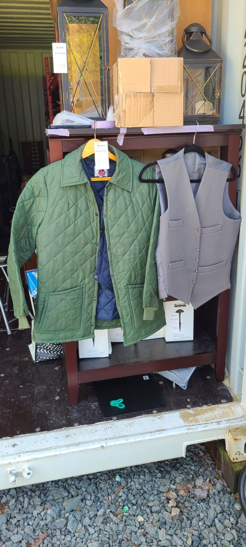 Harris Mayer quilted jacket, britpoint quilted vest & Winchester wool vest with interesting buttons. Pickup at 9 am