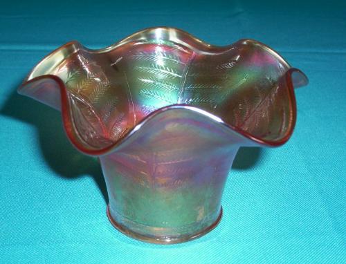 Fenton "Fern Panels" Carnival Glass Hat Vase. 3" Tall 6" Diameter