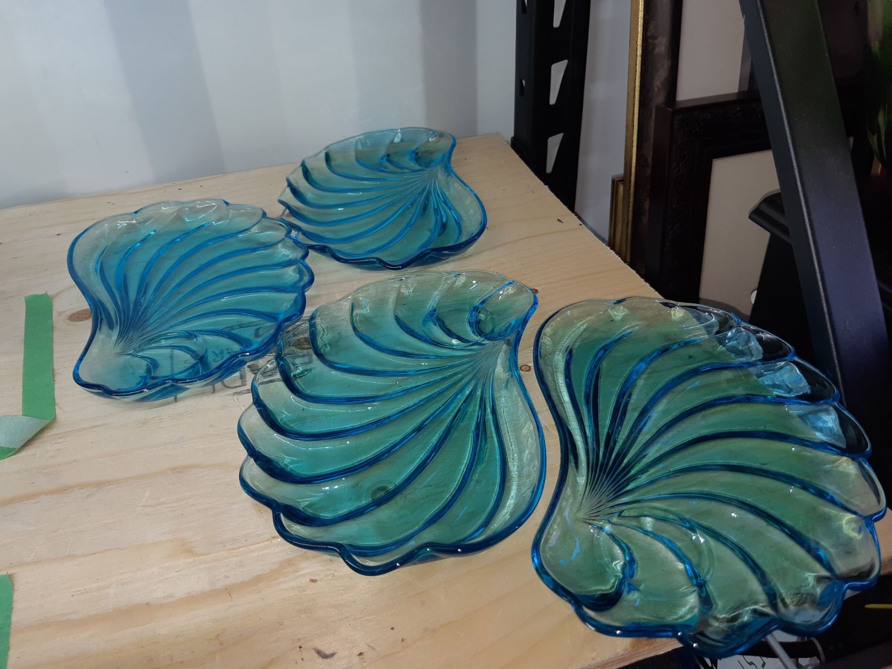 Swirl Bowl, Cups, Seashell Snack Tray Set of 4 Bring Pakcing and pickup at 9 am