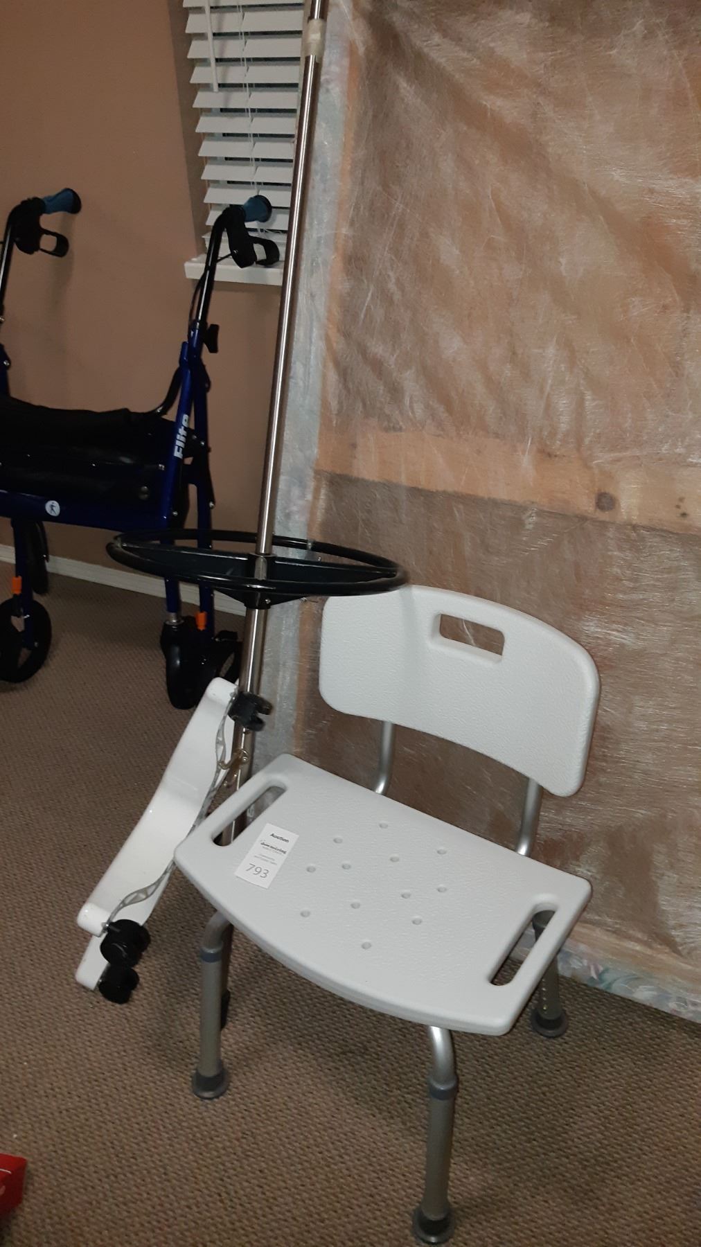 Shower Chair and Rolling Drip Rack Pick up at 11am.