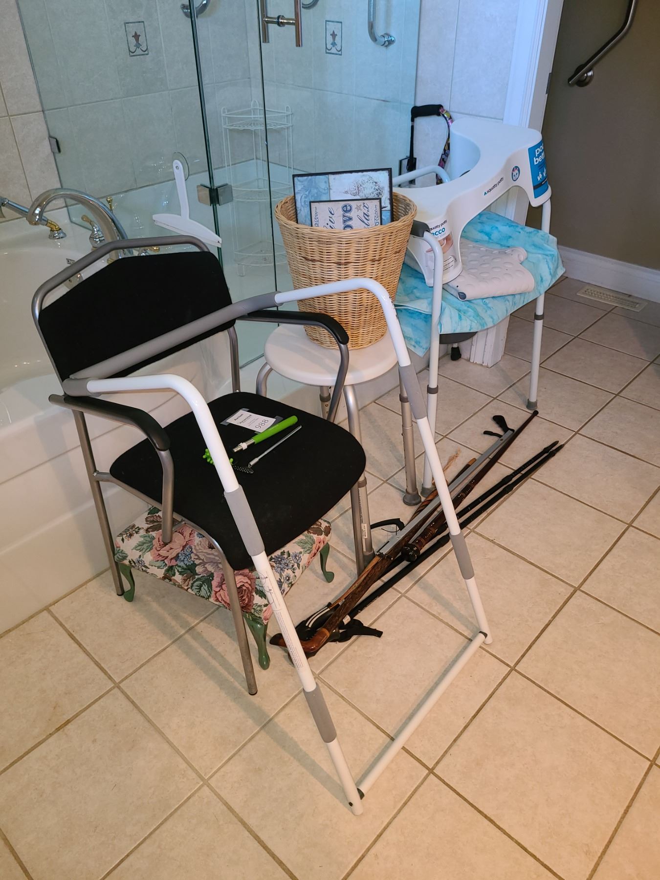 Lot includes canes, toilet seat, stools, basket, and chair. Pickup 10 am.