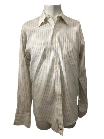 Hearts Afire (1992-1995) (TV) - John Hartman (John Ritter) - Nordstrom brand, French cuff, white with black pinstripe dress shirt (size 15 1/2–36 ). Includes the store security tag on the bottom of the shirt. " John" is written in black marker inside the collar.