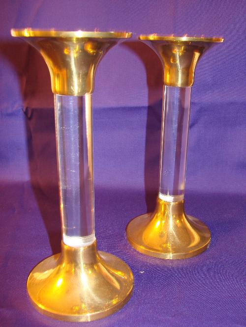 Heavy brass & glass candleholders-apprx. 7 3/4" tall