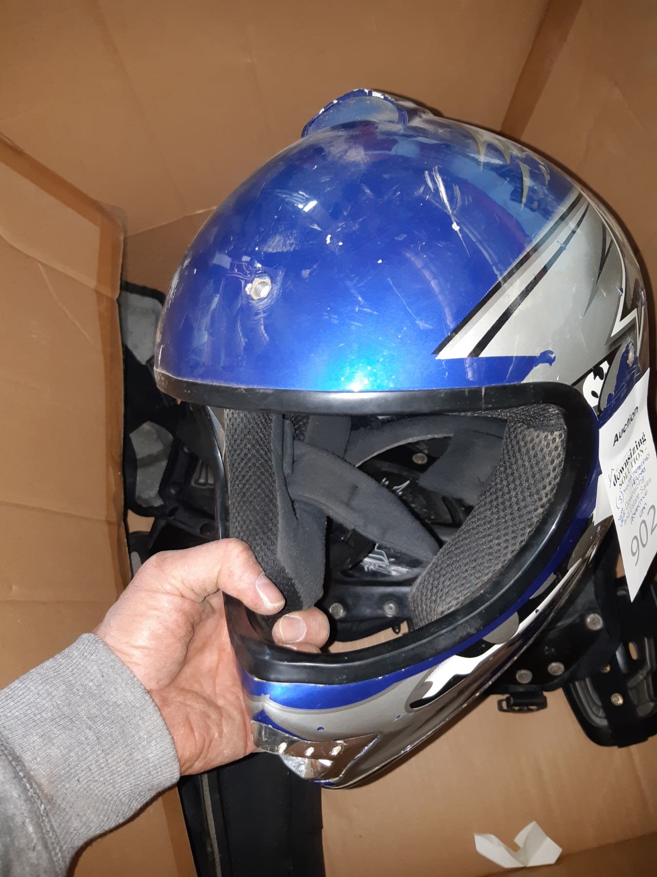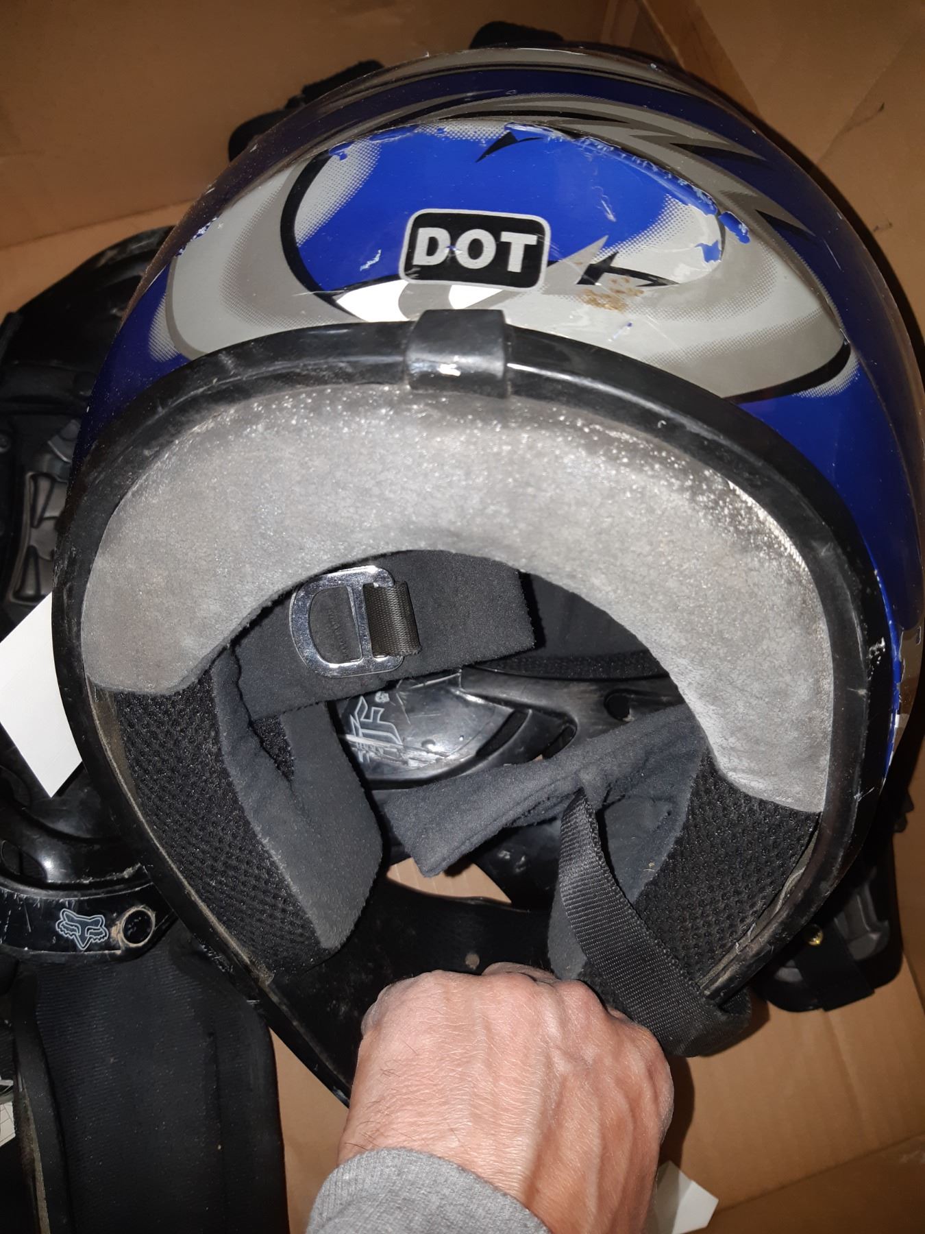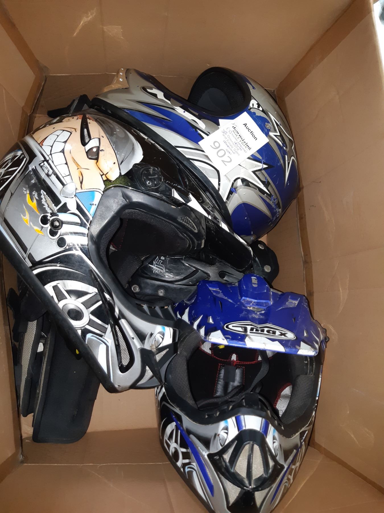 3 helmets, Childs breast guard and knee pads. Puckup at 10 am