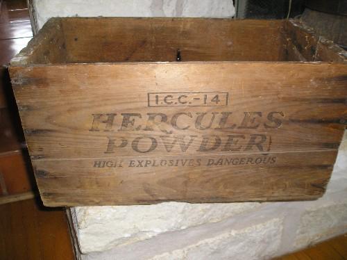 Hercules Powder Primitive box that measures approximately 10"D x 18"L x 10"H.