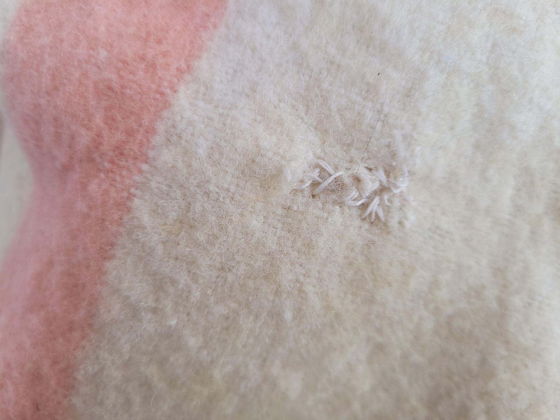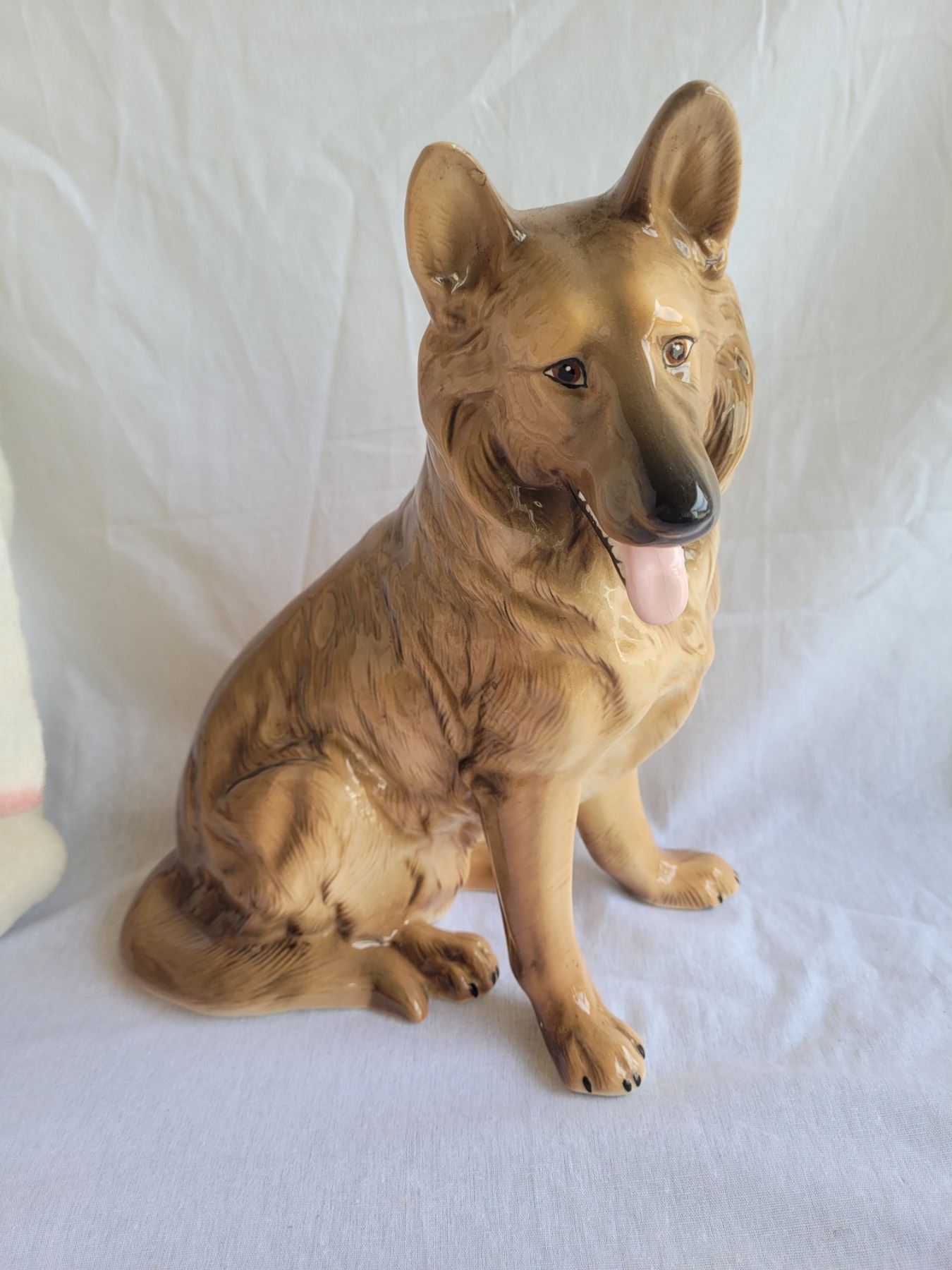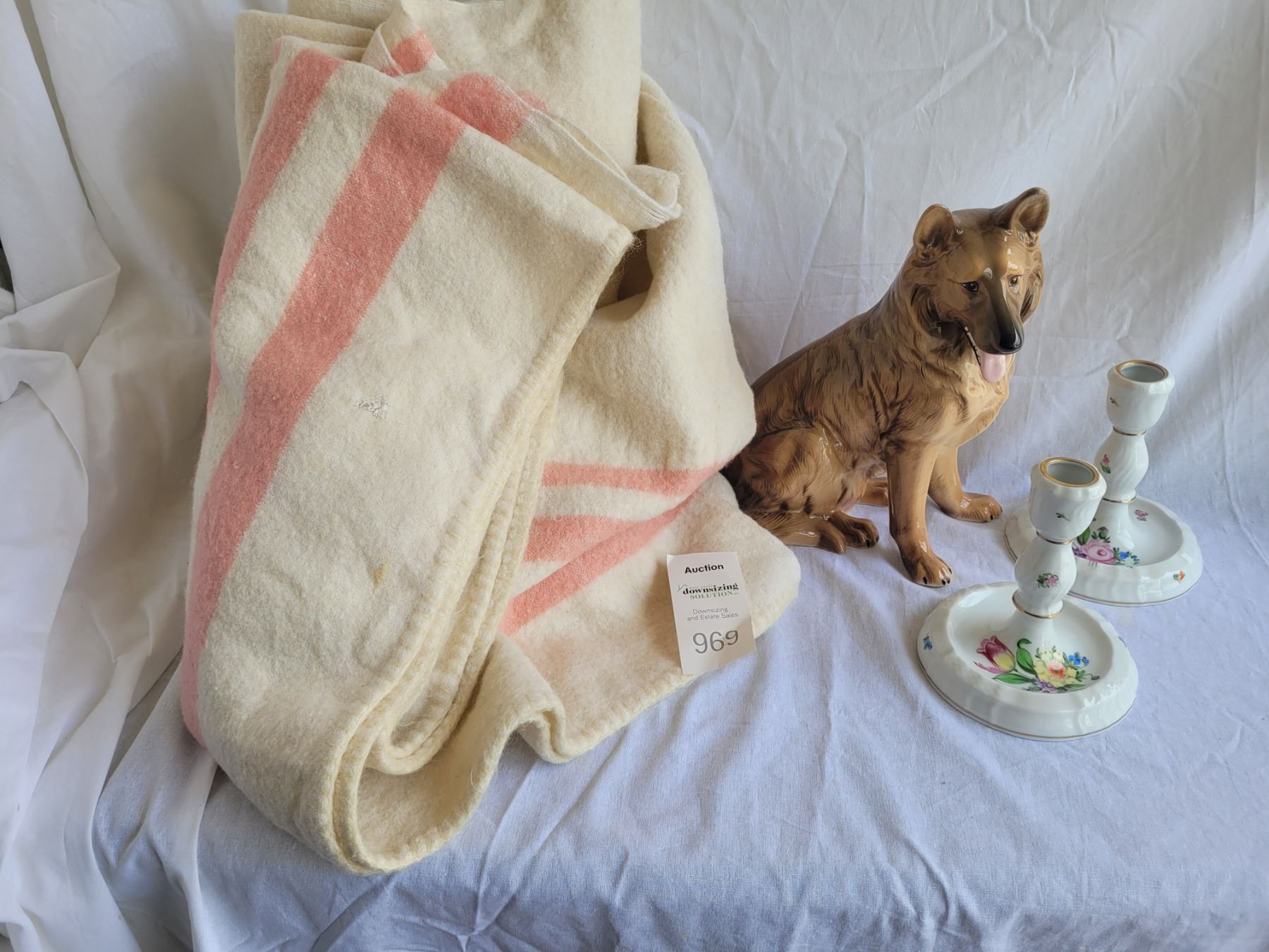 Pair of Henend candle sticks, porcelain dog and wool blanket. Pickup at 9 am