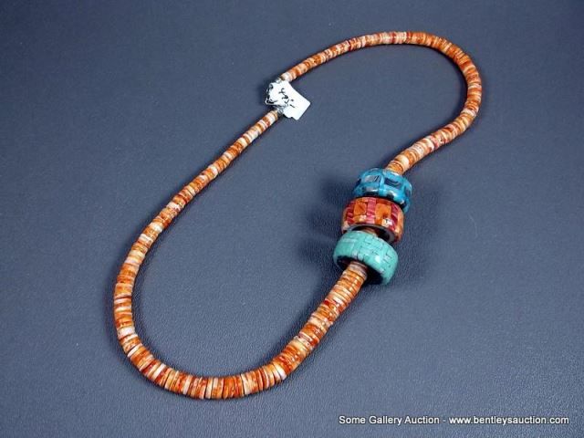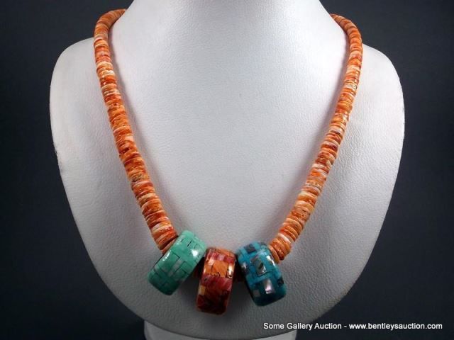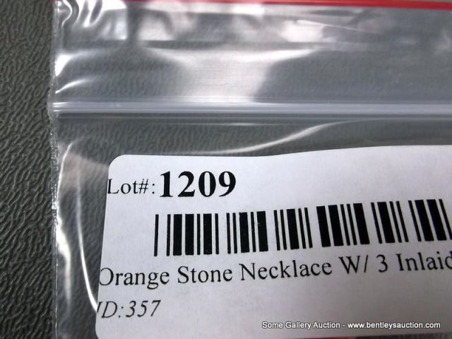 Heshie Orange Stone Necklace W/ 3 Inlaid Rings Weight: 114.3 Grams Retail: $1,280.00
