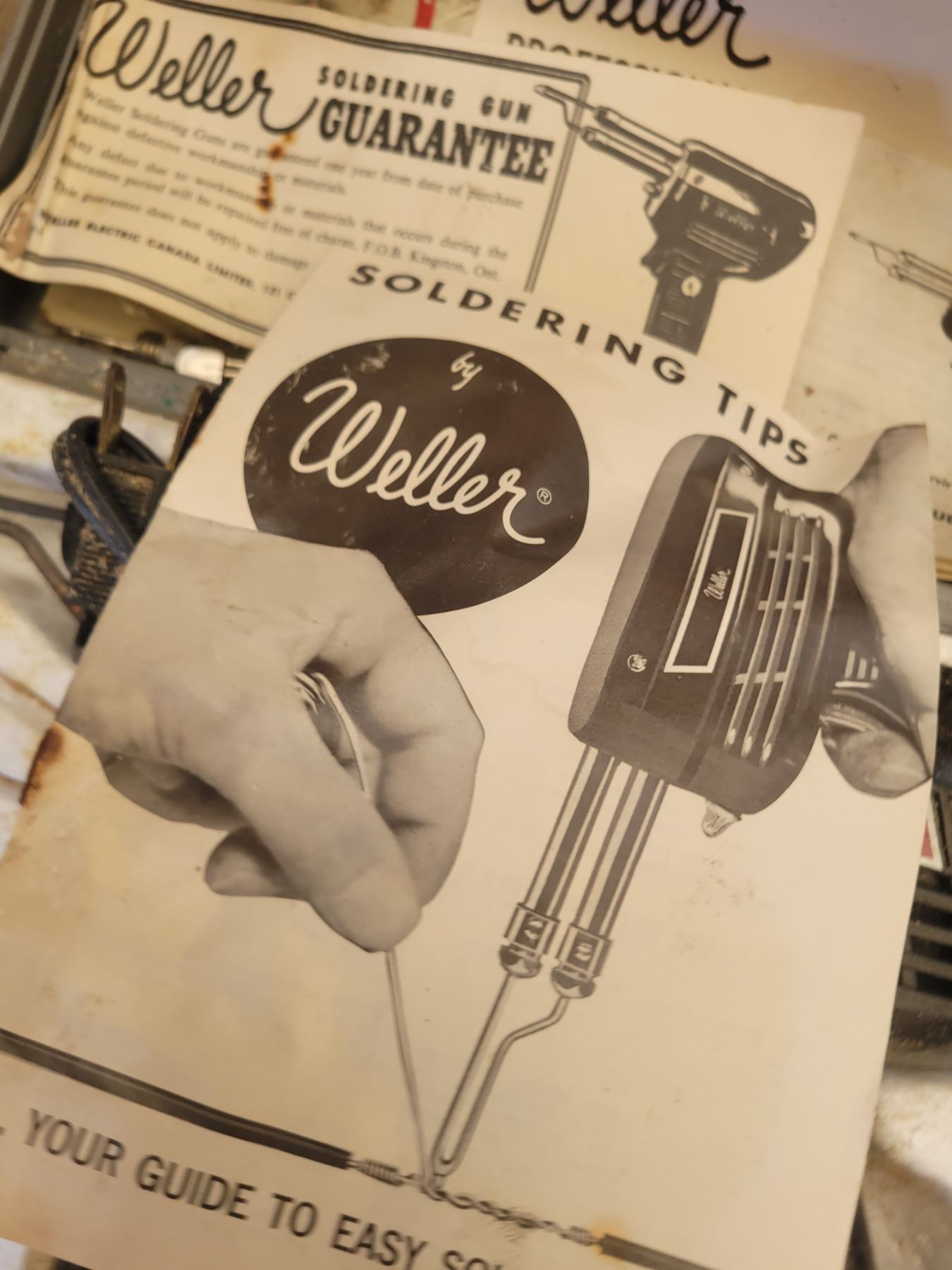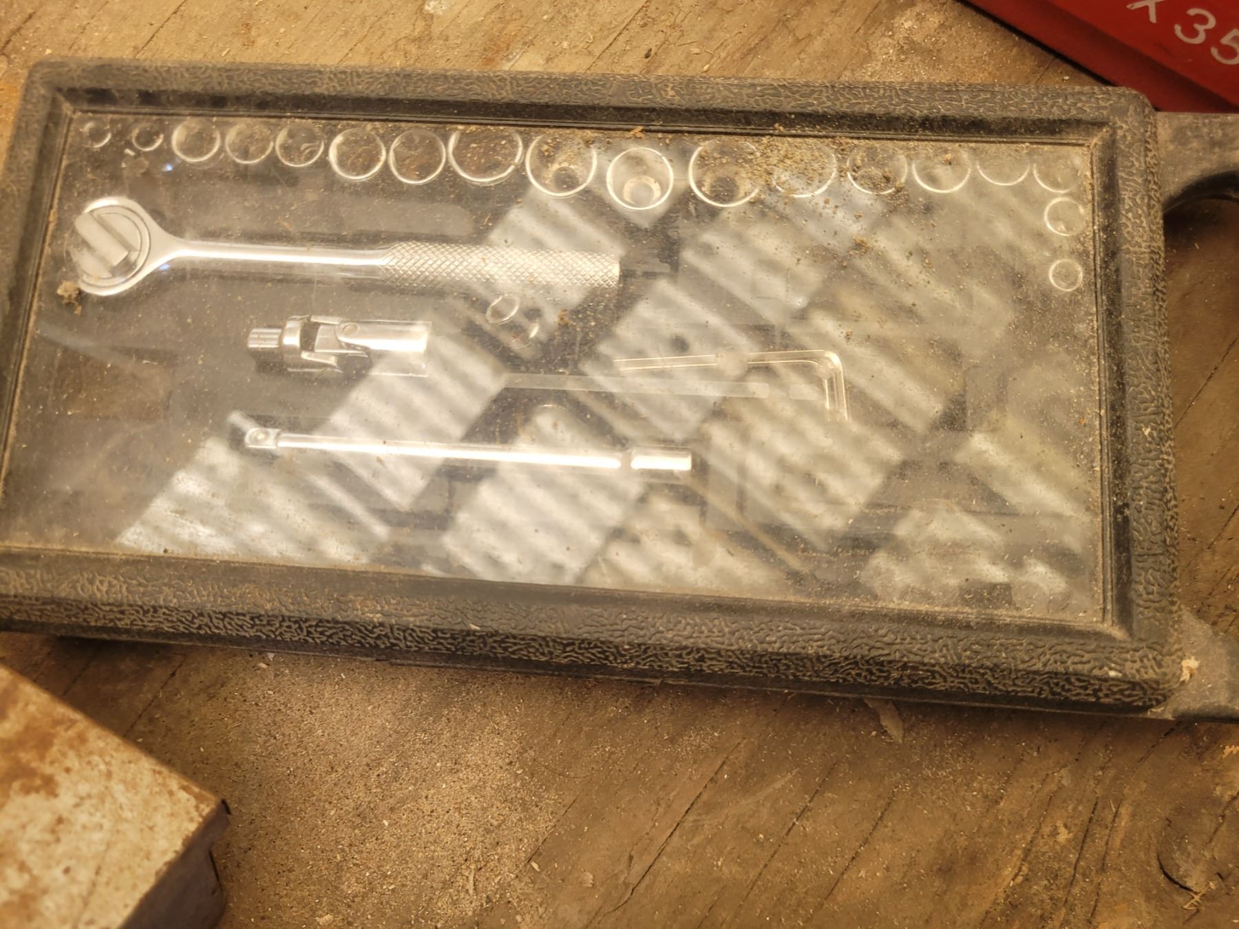 Hilti piston drive tool, untested. Weller soldering iron, vintage first aid kit. Socket set. Pickup at 11 am