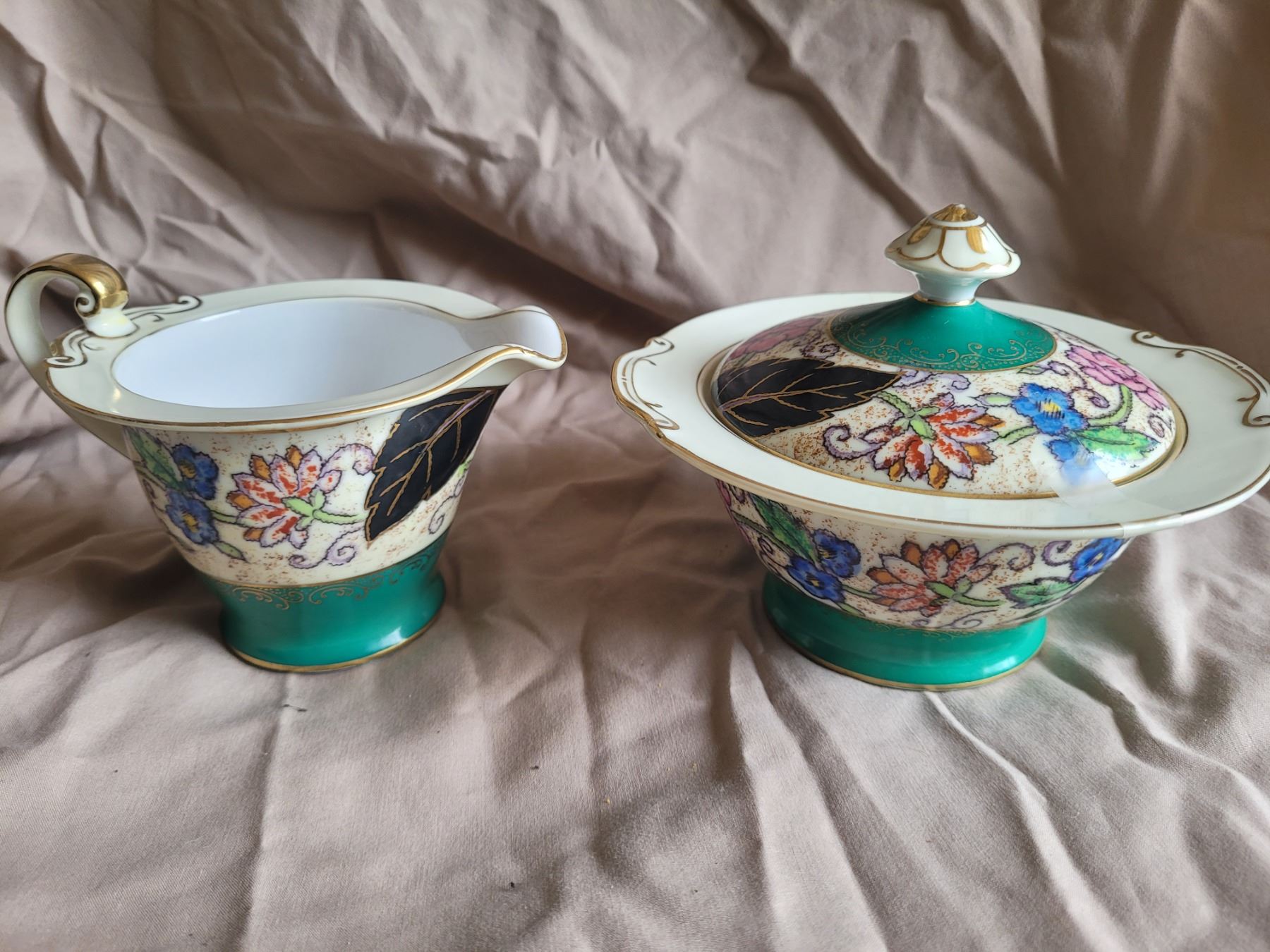 Teapot, cream & lidded sugar made in Occupied Japan. Hand painted 6" plate made in Bavaria. Pickup at 9 am