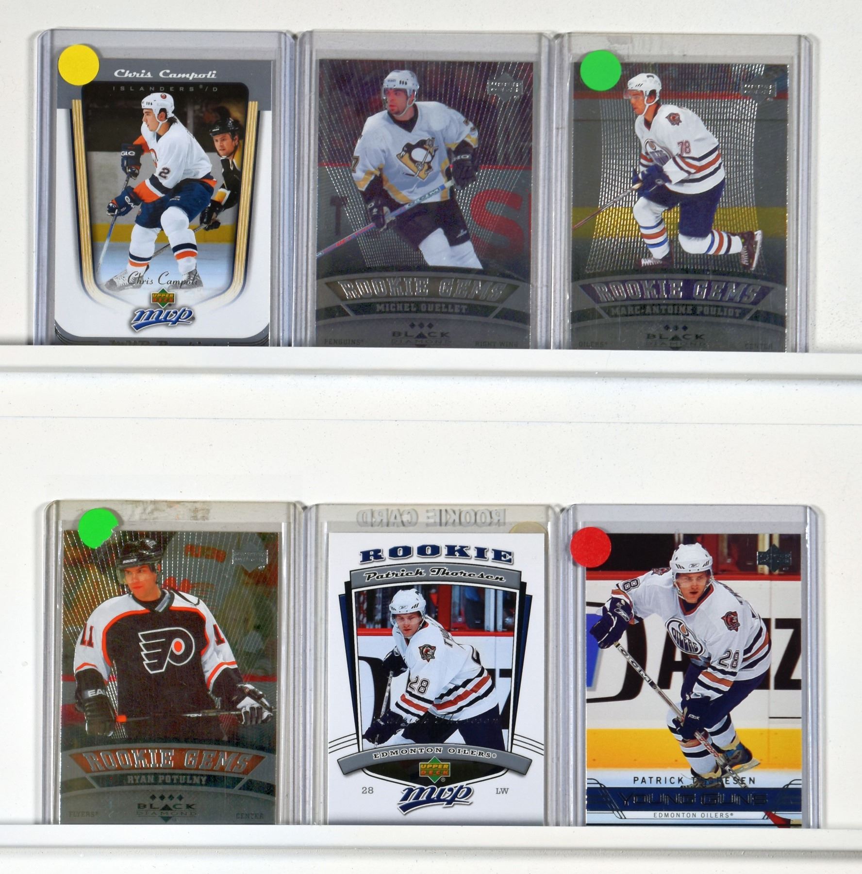 6 Card Lot of Rookie Cards including Patrick Thoresen x2, Ryan Potulny, Marc-Antoine Pouliot, Michel Oullet, Chris Campoli