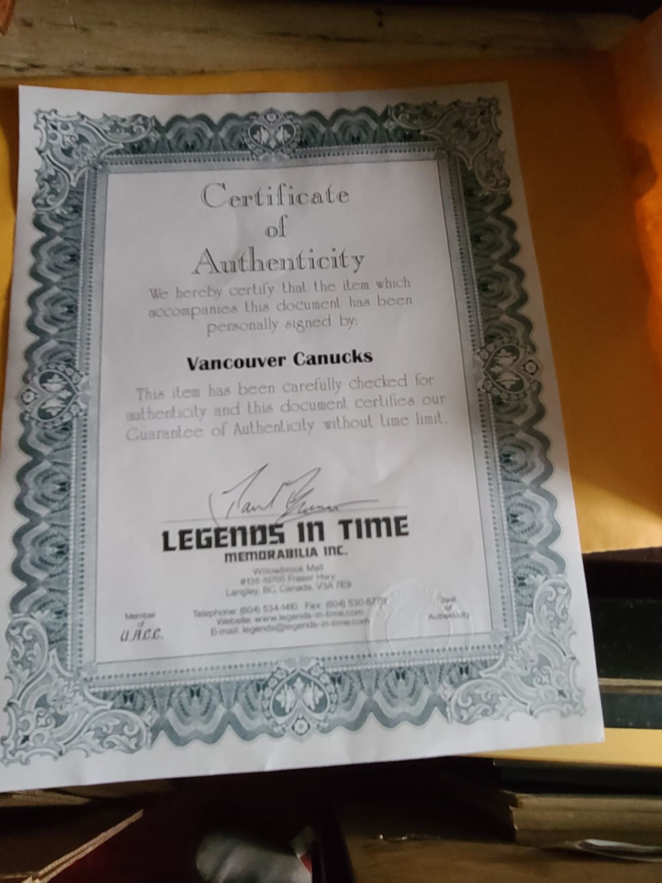 Linden and Luongo hockey jerseys with certificates of authenticity. Pickup 9 am.
