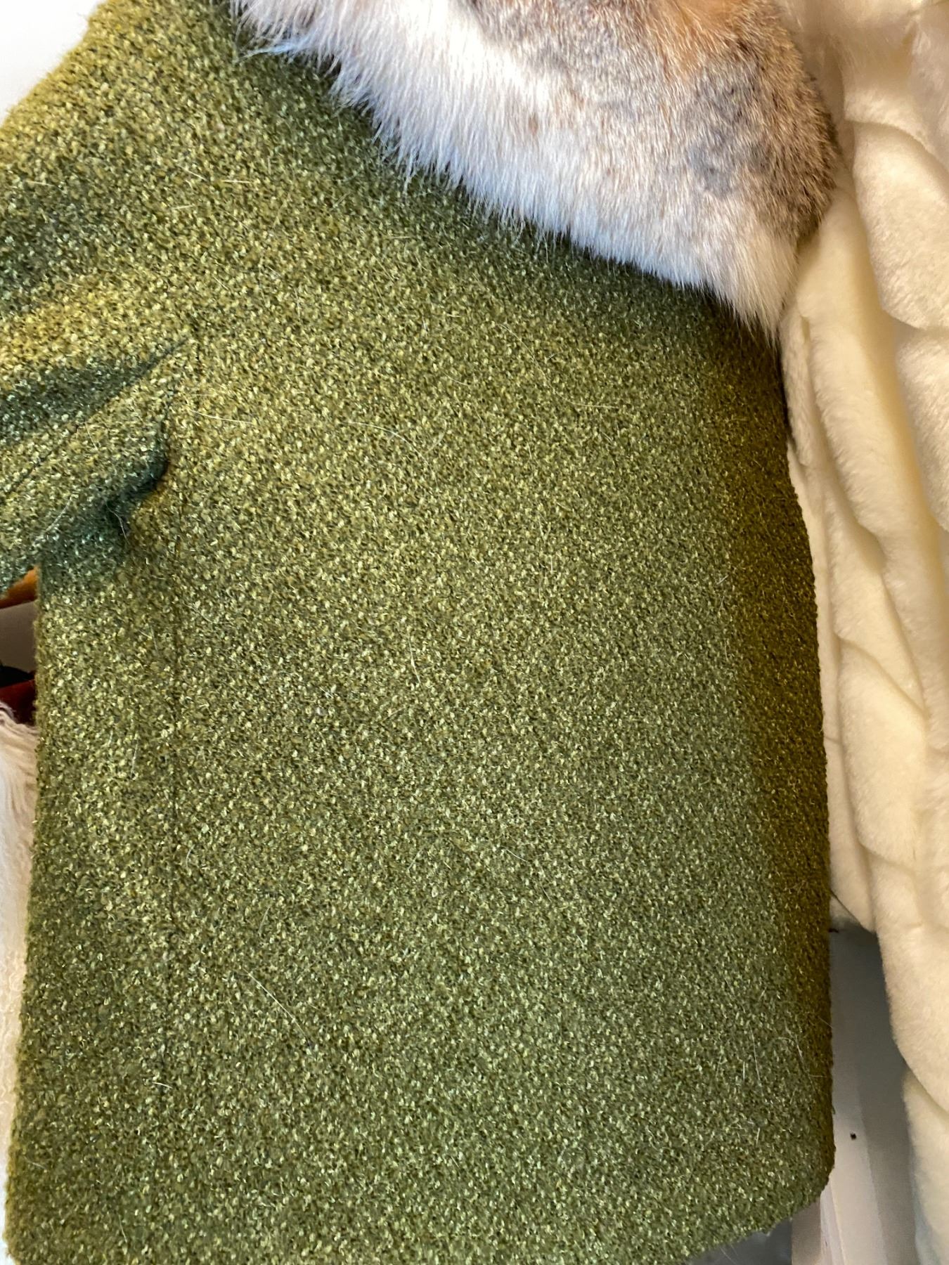 Holt renfrew jacket, Osen faux fur jacket, green jacket with fur collar and more. All size small. Pickup at 9 am