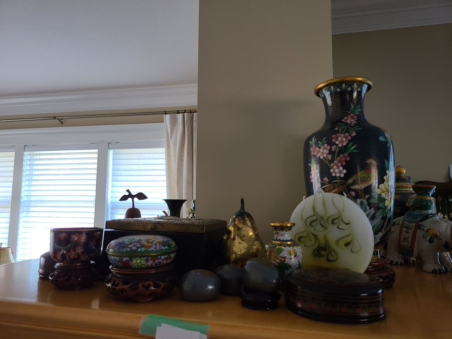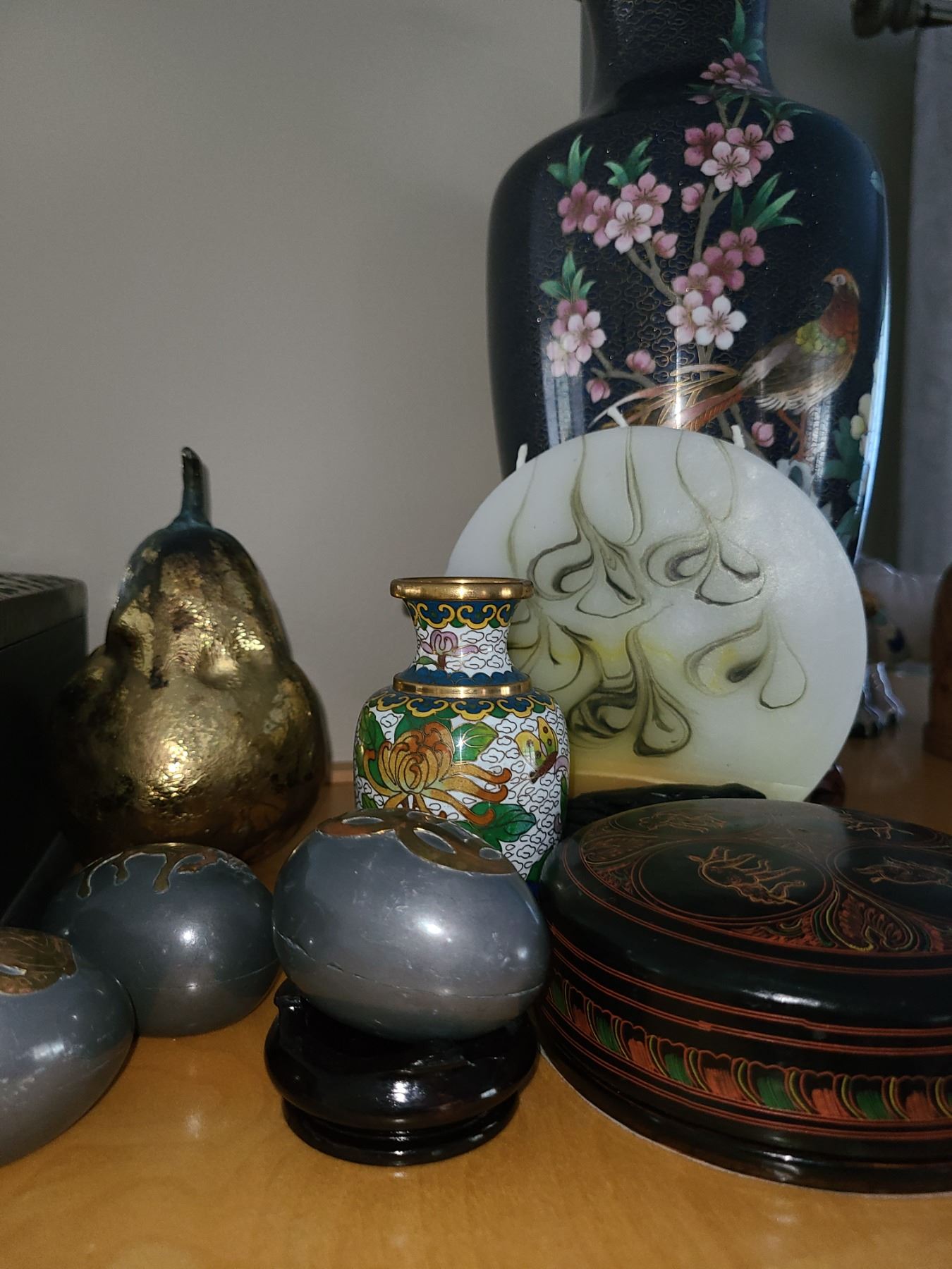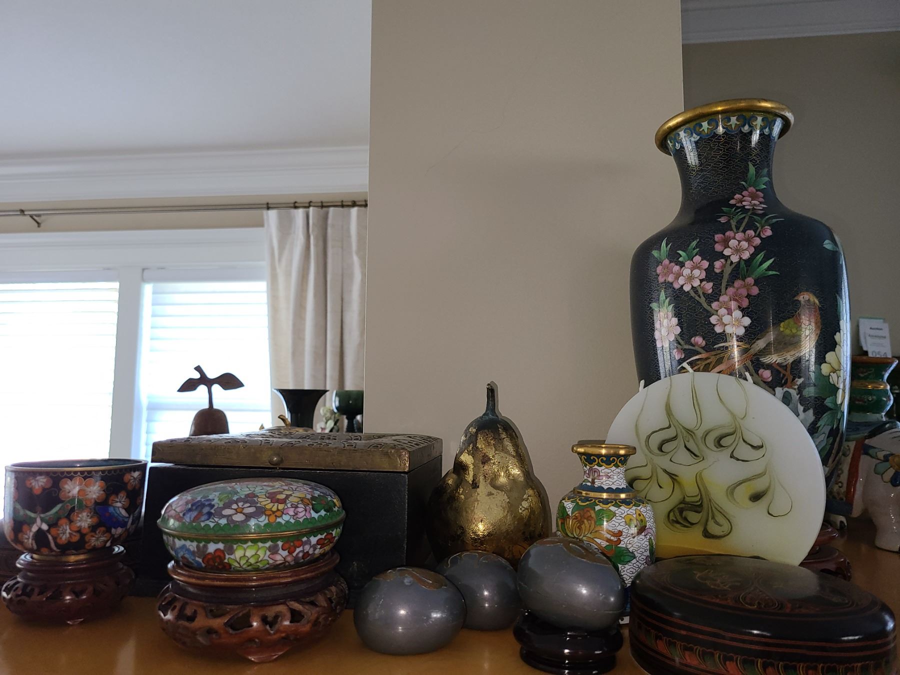 Asian style home decor including vase on stand. Bring packing material. Pickup 9 am.