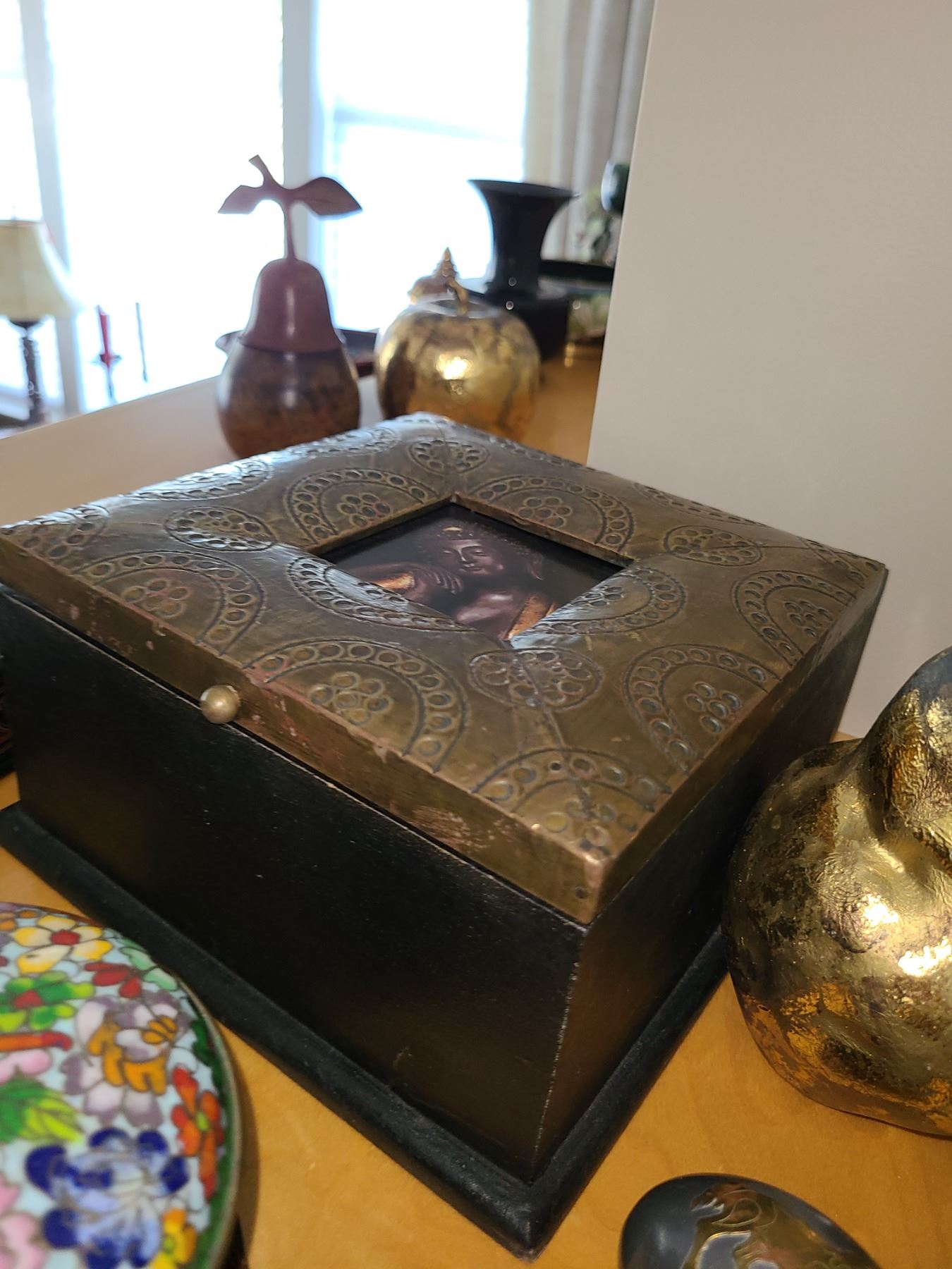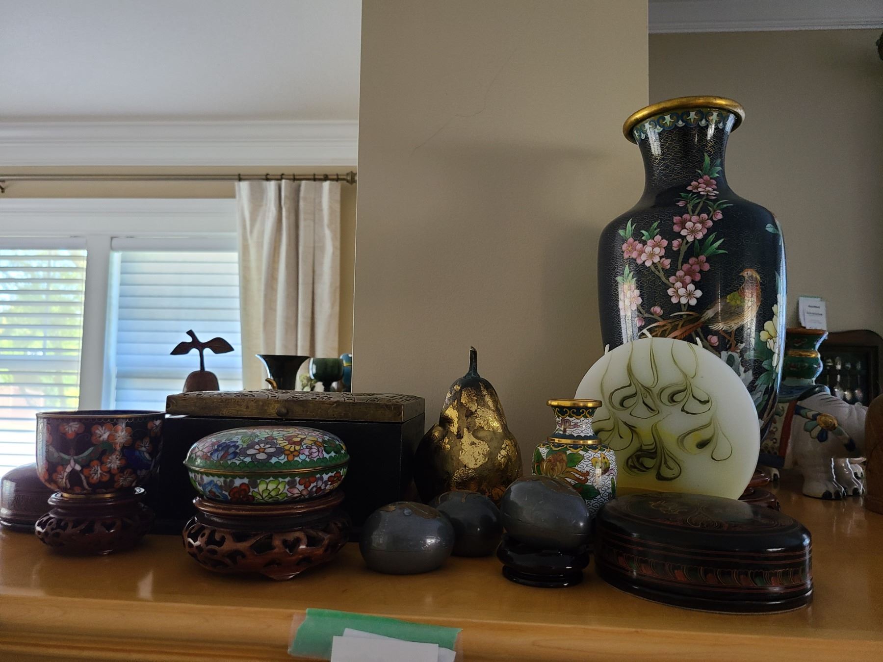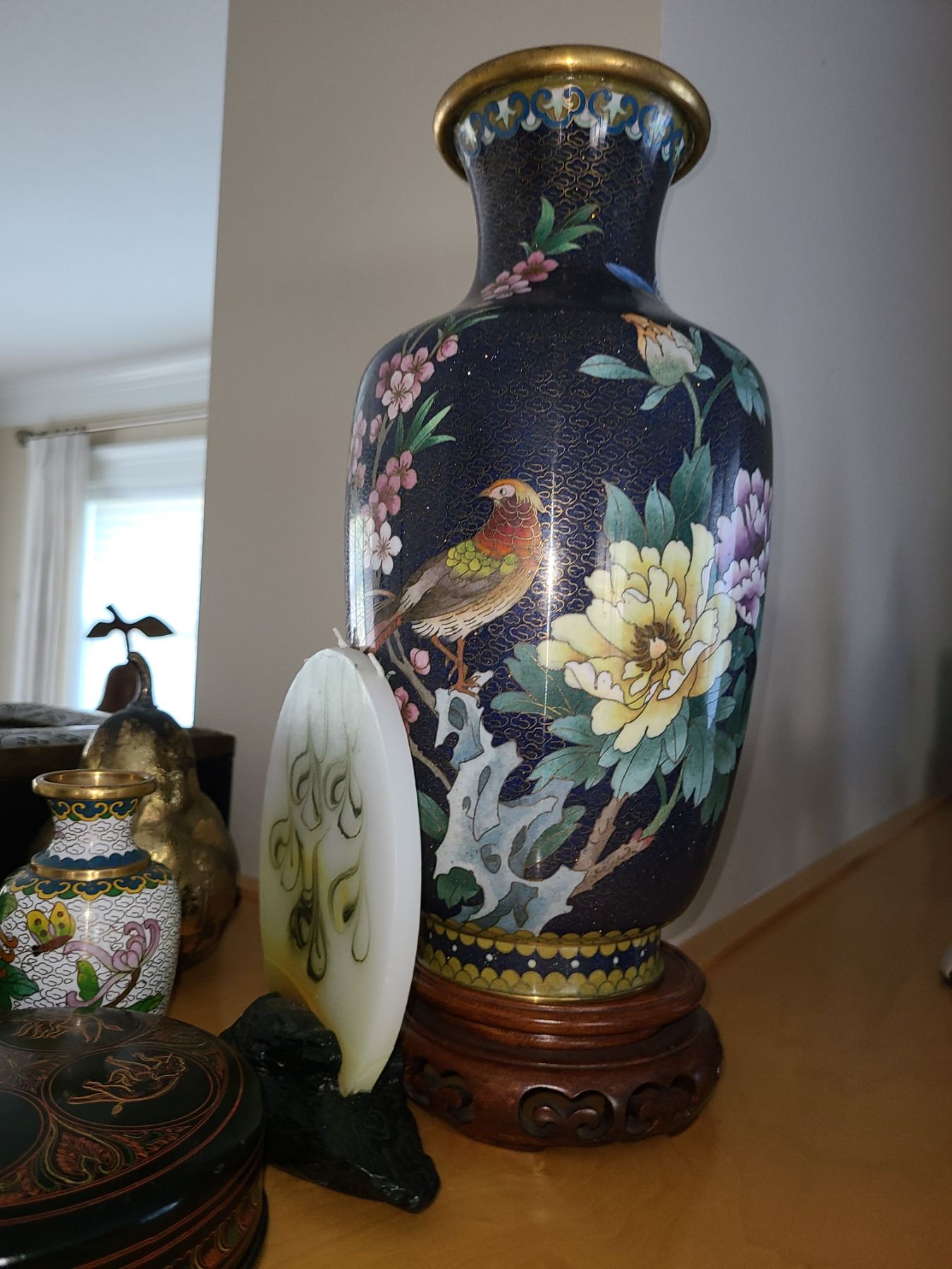 Asian style home decor including vase on stand. Bring packing material. Pickup 9 am.