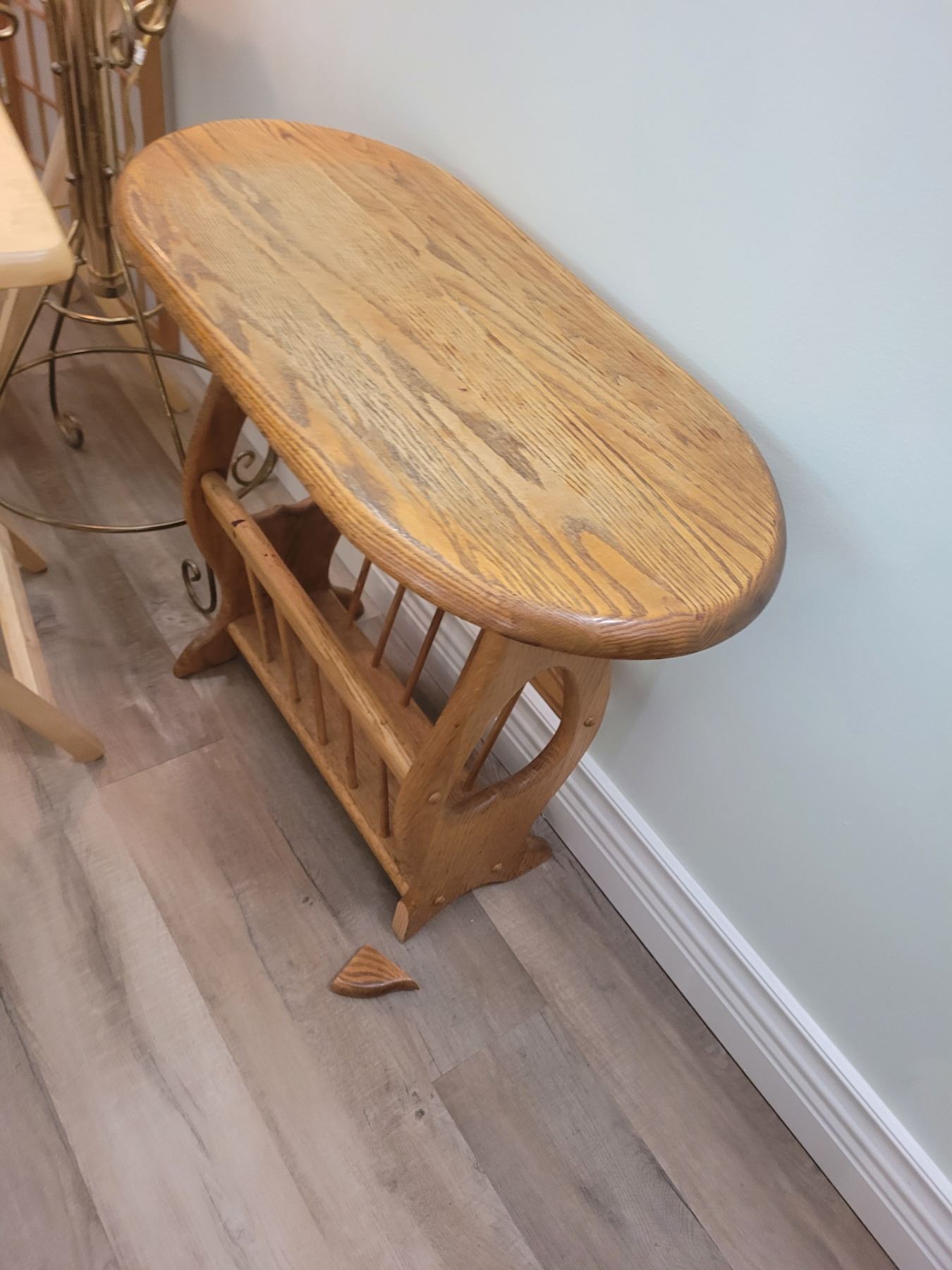 3 panel privacy screen, 2 fold down tables, metal coat rack, brass lamp and small hall table, please note that the footing has come away, just needs to be reglued, note scratches. Pickup at 11 am