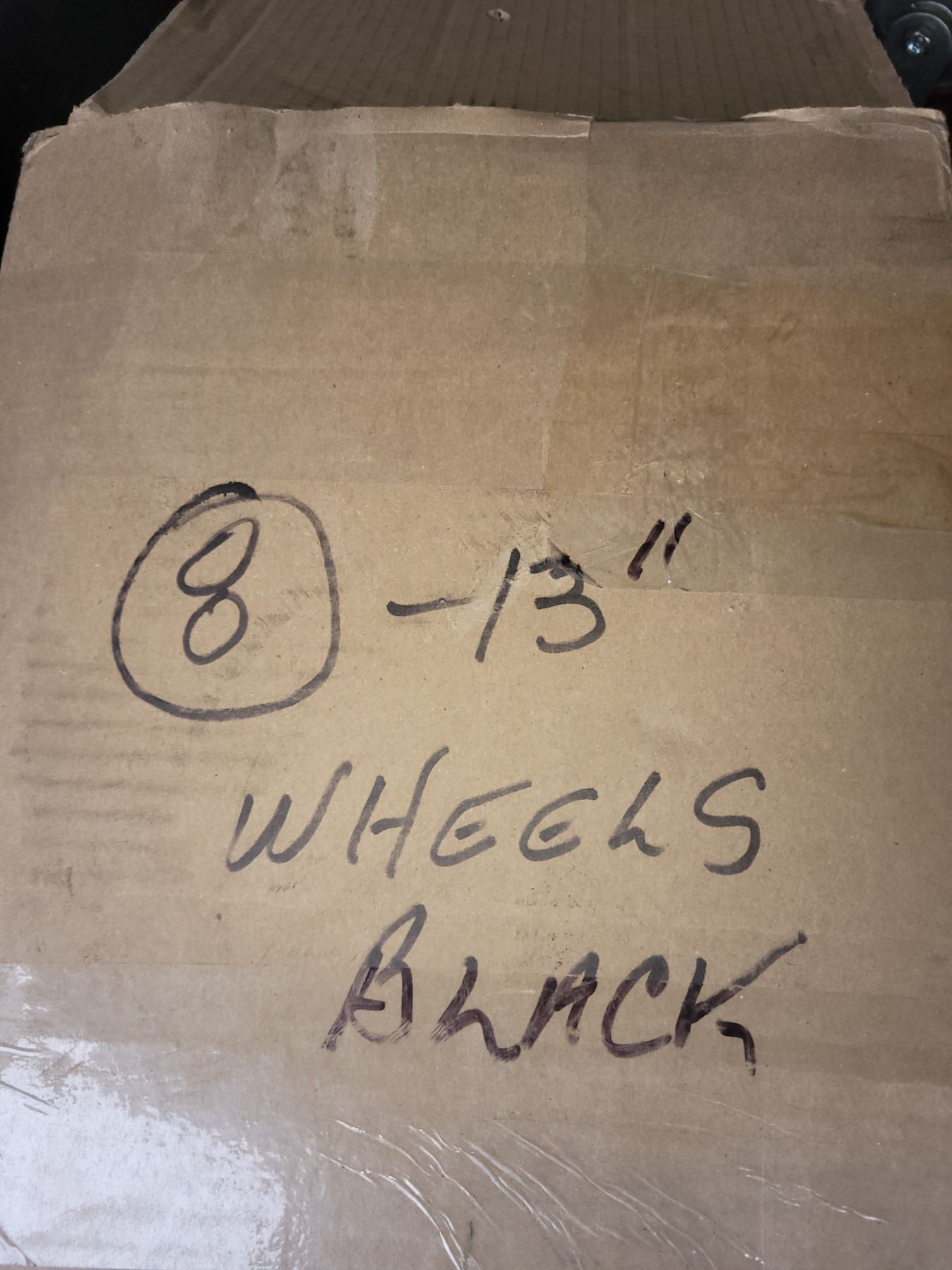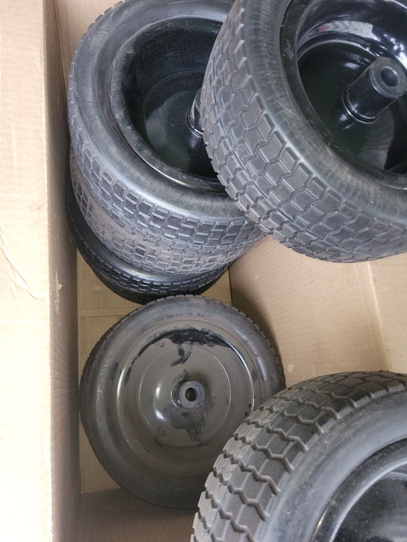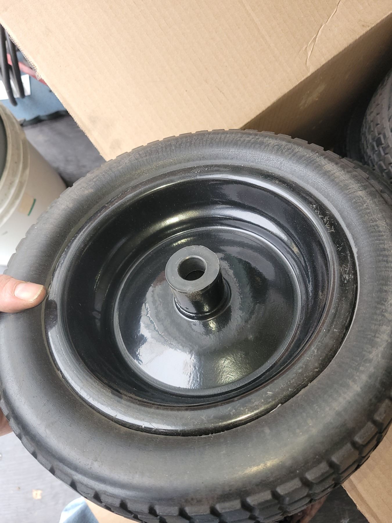 New 8 x 13" wheels for wheelbarrow, cart pickup at 9 am