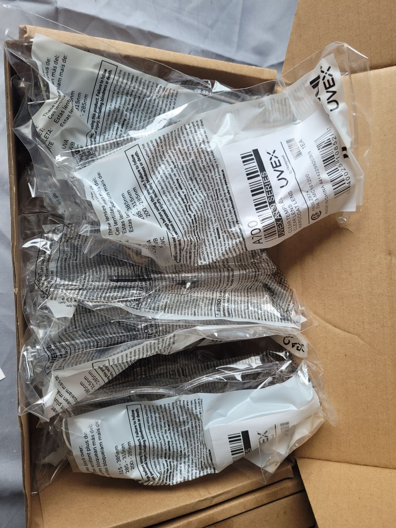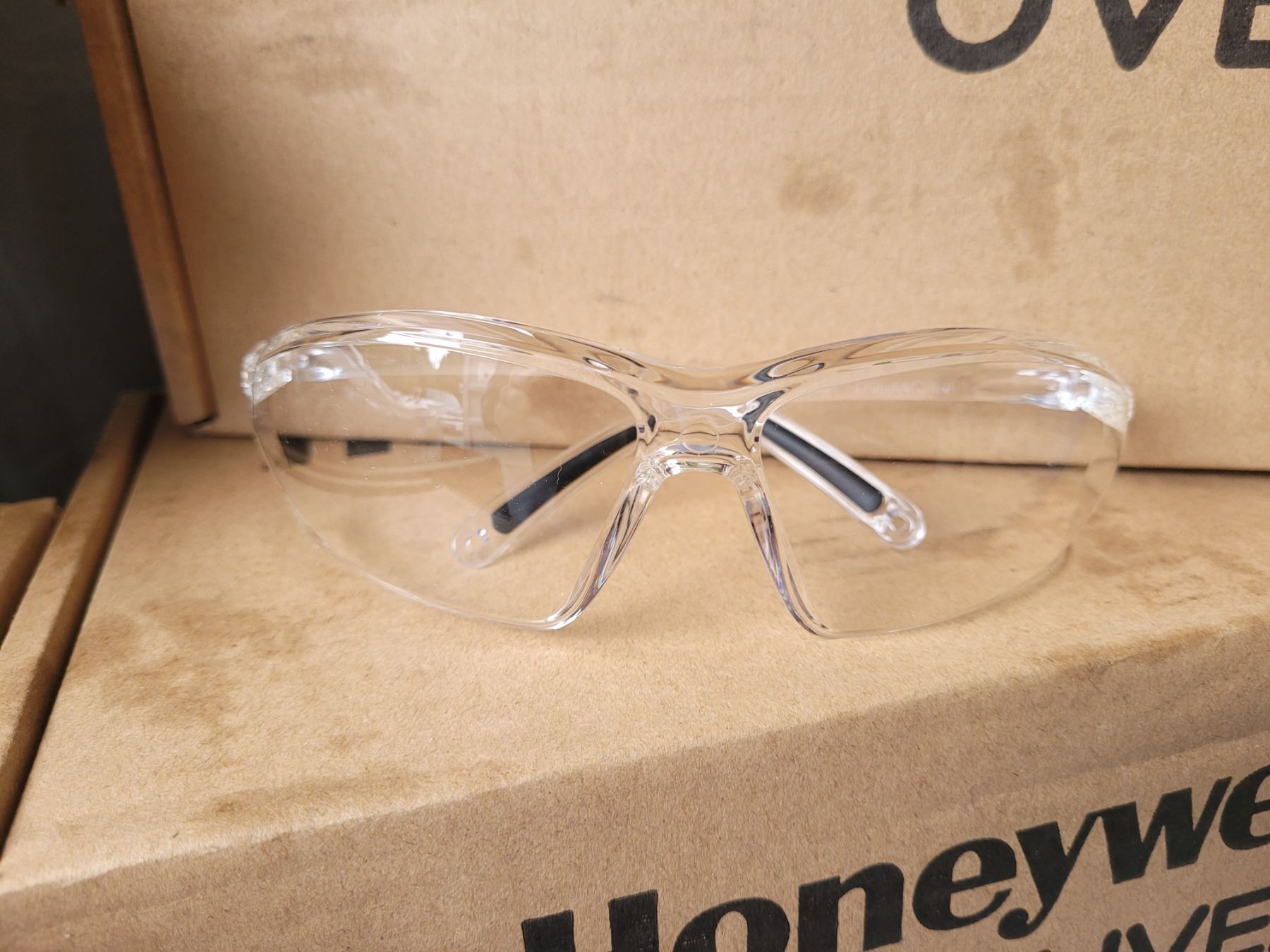 3 boxes with about 10 pairs in each box. UVX clear protective eyewear. pickup at 10 am