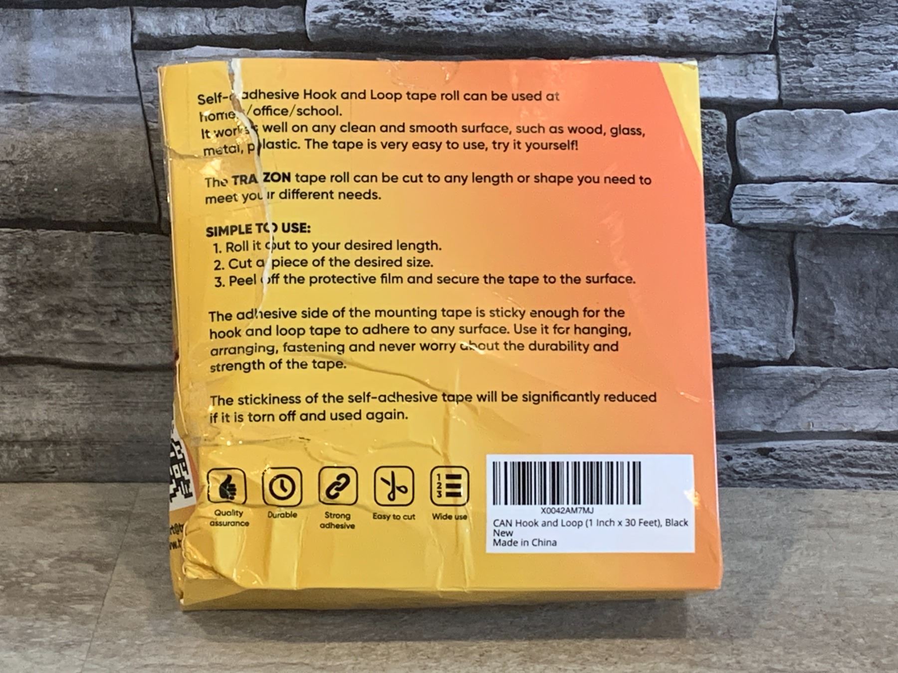 Hook & Loop Tape Roll with Heavy Duty Adhesive - 1" x 30ft - New
