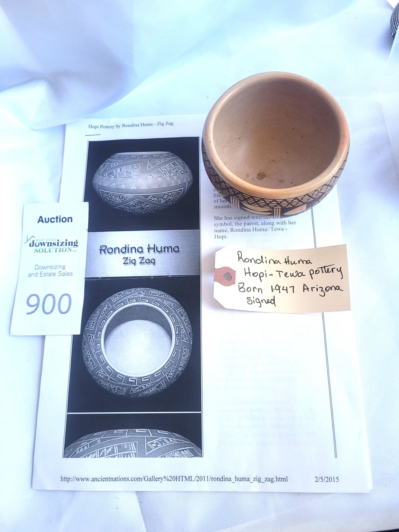 Signed Vase 3.3/4 x2.5" by Ronina Huma born Arizona 1947bpickup 9 am