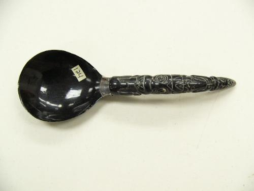 Horn handled spoon with Tlingit designs and silver mounting (3)