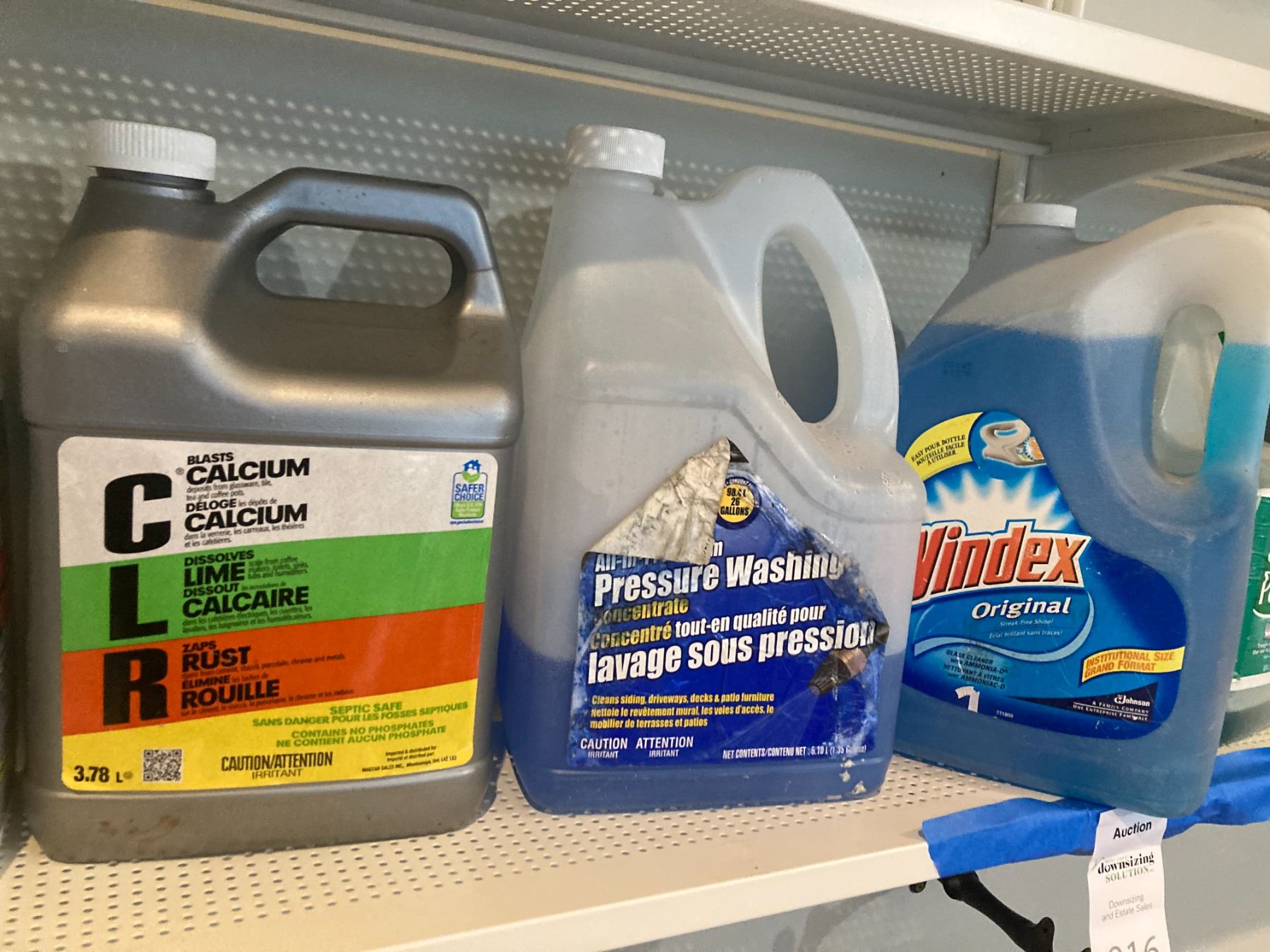 Lot includes CLR, de-iced, Windes, and more. Pickup at 9 am, cat. A.