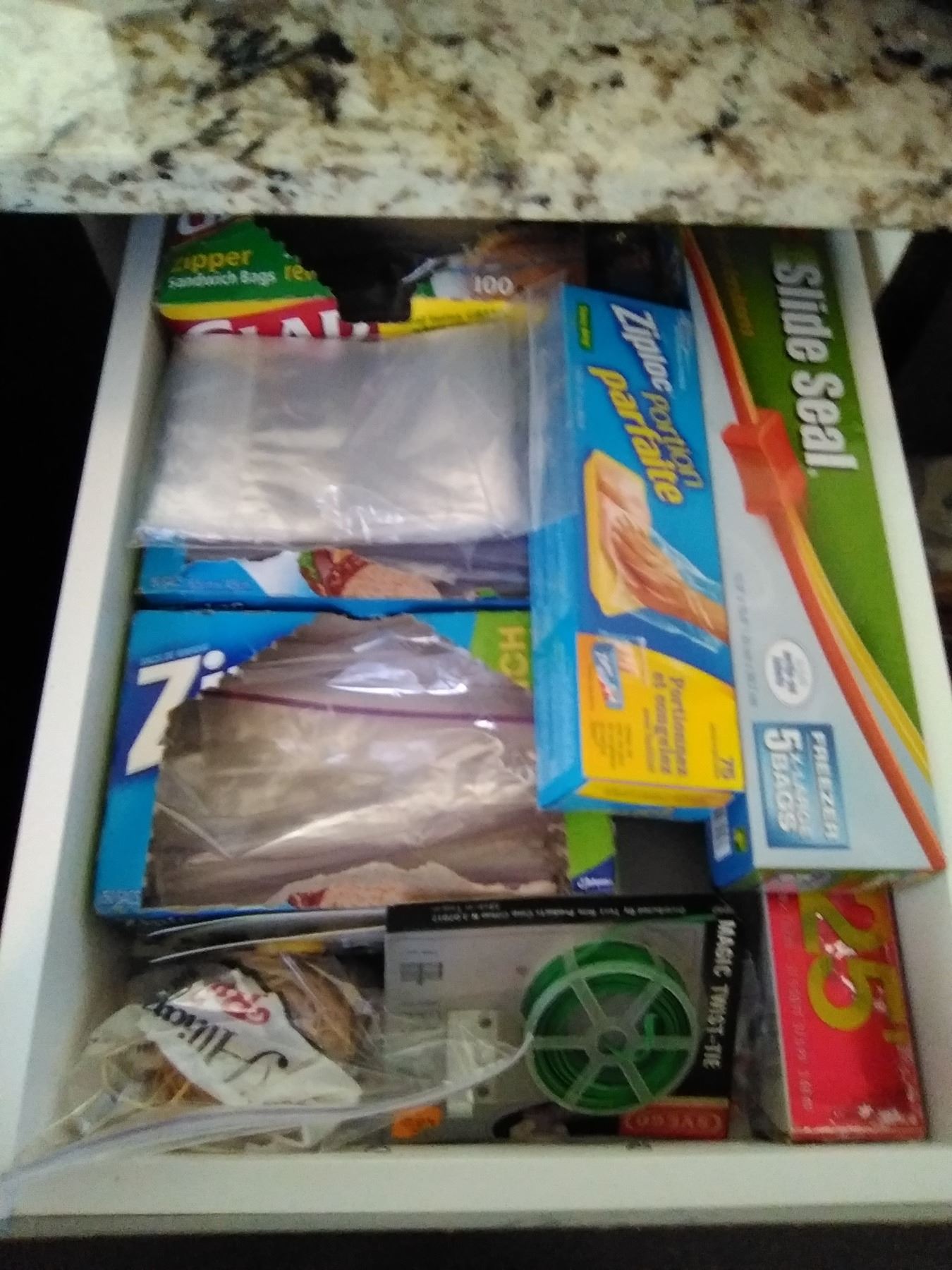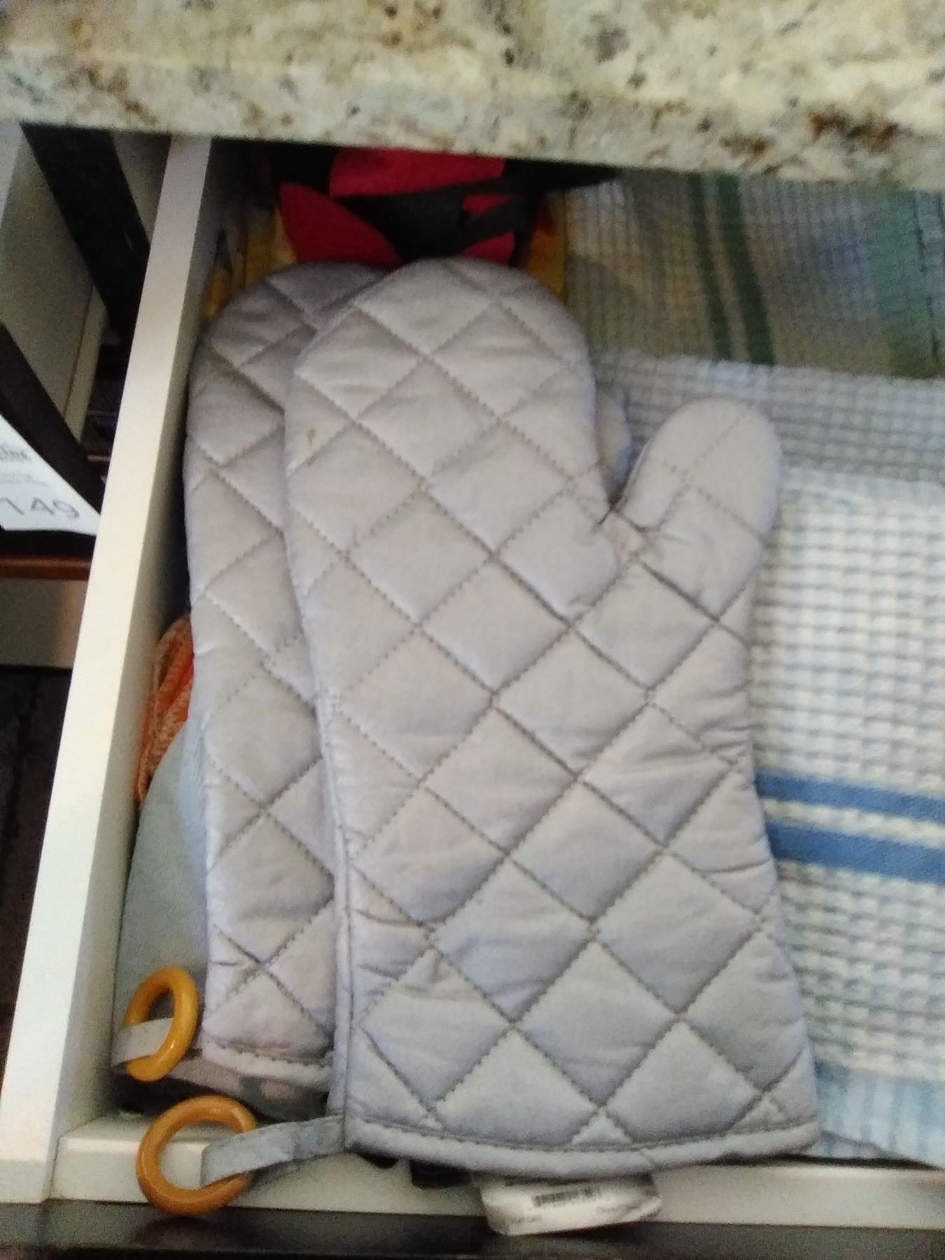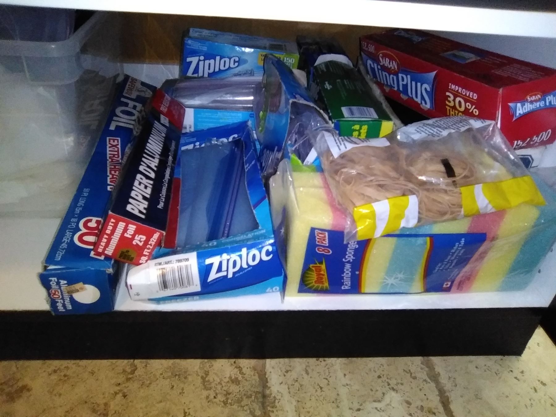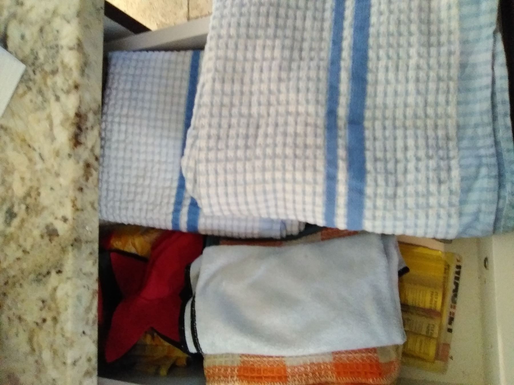 2 drawers and cupboard below of storage bags, trays, oven mitts Pickup at 9 am