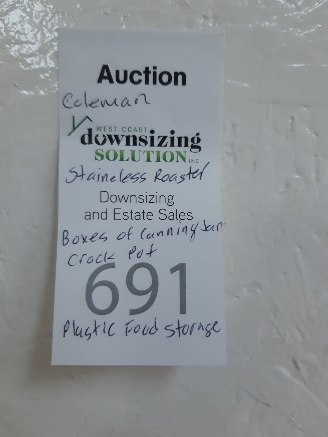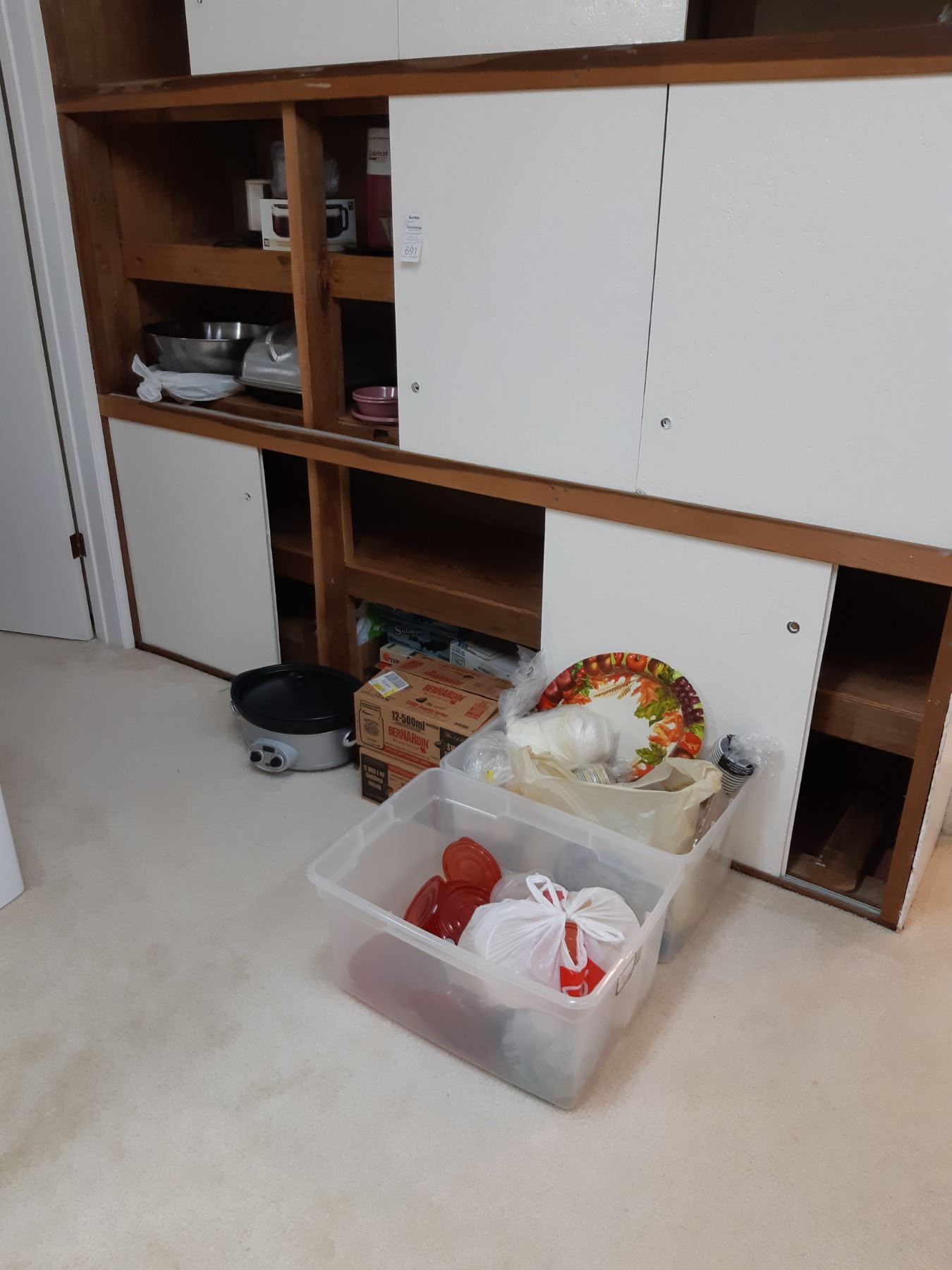 Crockpot untested, several boxes of canning jars, Coleman drink cooler, roasting pan and food storage contatiners plus more. Bring packing materials and pickup at 10 am