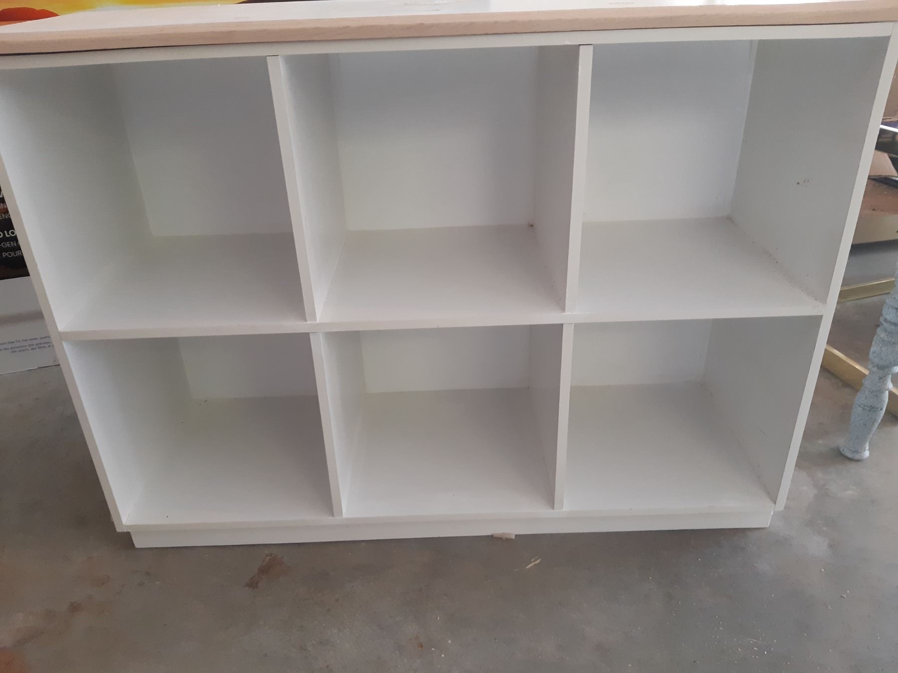 Cube shelving 25x12x35 and half moon table 27x30 with stone faux finish. Pickup at 12 pm