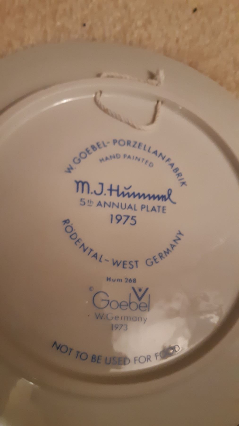 1975 Hummel plate is 7.5" dia. Bring packing material