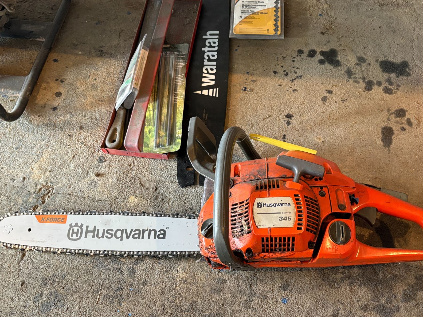 Husqvarna 345 chain saw c/w Waratah bar & files