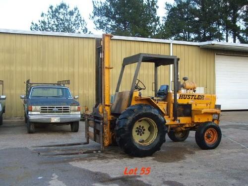 Hustler Model H6000T Forklift, 6000 lbs, Type JD 4219, SN 78060, Gross Wt 11,940 lbs, 65% rubber, 6 ft. forks, 12' lift, shuttle shift, 4 cyl, JD Diesel Engine, working daily, high side of transmission disconnected