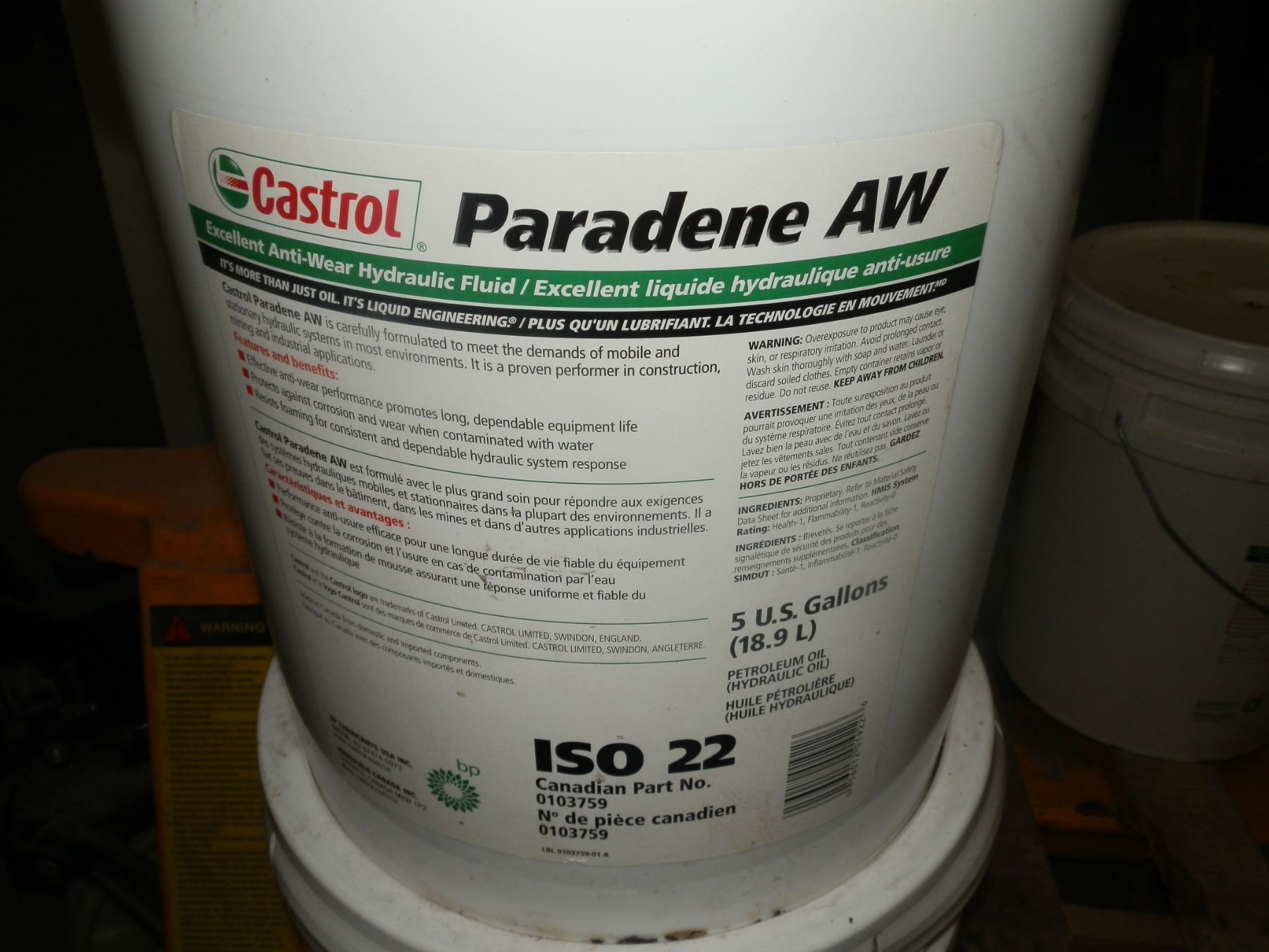 Castrol Paradene Anti Wear Hydraulic Fluid, you get 3 5 gallon pails for one money.....