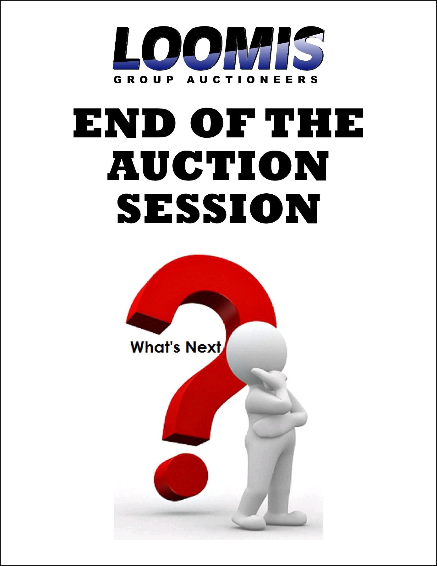 Auction company reserves the right to implement a one time, 15 minute bidding time extension, in the event a bidder attempts to place last minutes, or seconds, bids. Thus, creating unfair "closeout " or counter bid time, to other bidders. This will be know as one time added time of reconsideration, or FINAL LAST CALL, of an additional 15 final minutes. In the event there are no last minute or seconds bid on the original countdown time, bidding will close as advertised. OVERTIME, AND LAST MINUTE BIDDING EXTENSION MAY APPLY (EXTENSIONS BY VARY AUCTION TO AUCTION.) All bidders understand, agree, and consent these terms, and hold Loomis Auctioneers harmless of any liability or claims, whatsoever.