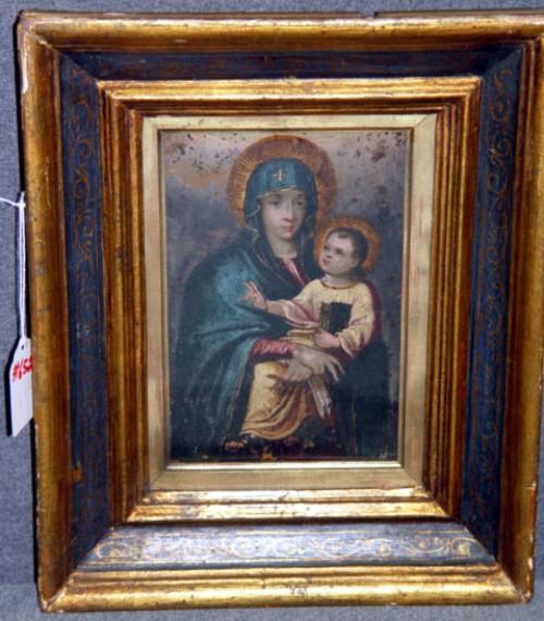 ICON MADONNA AND CHILD, OIL ON COPPER 5 1/2" X 8"