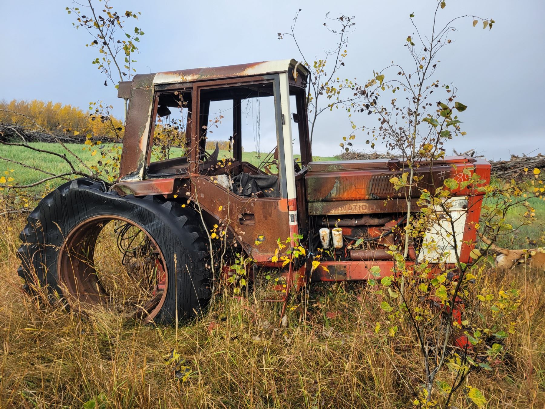 IH 986 Tractor, PTO, , has fire damage, mostly complete, sold for parts