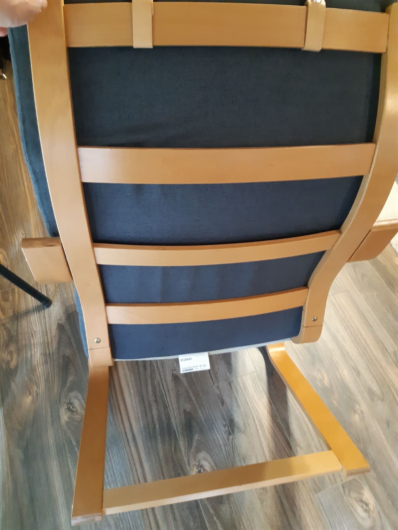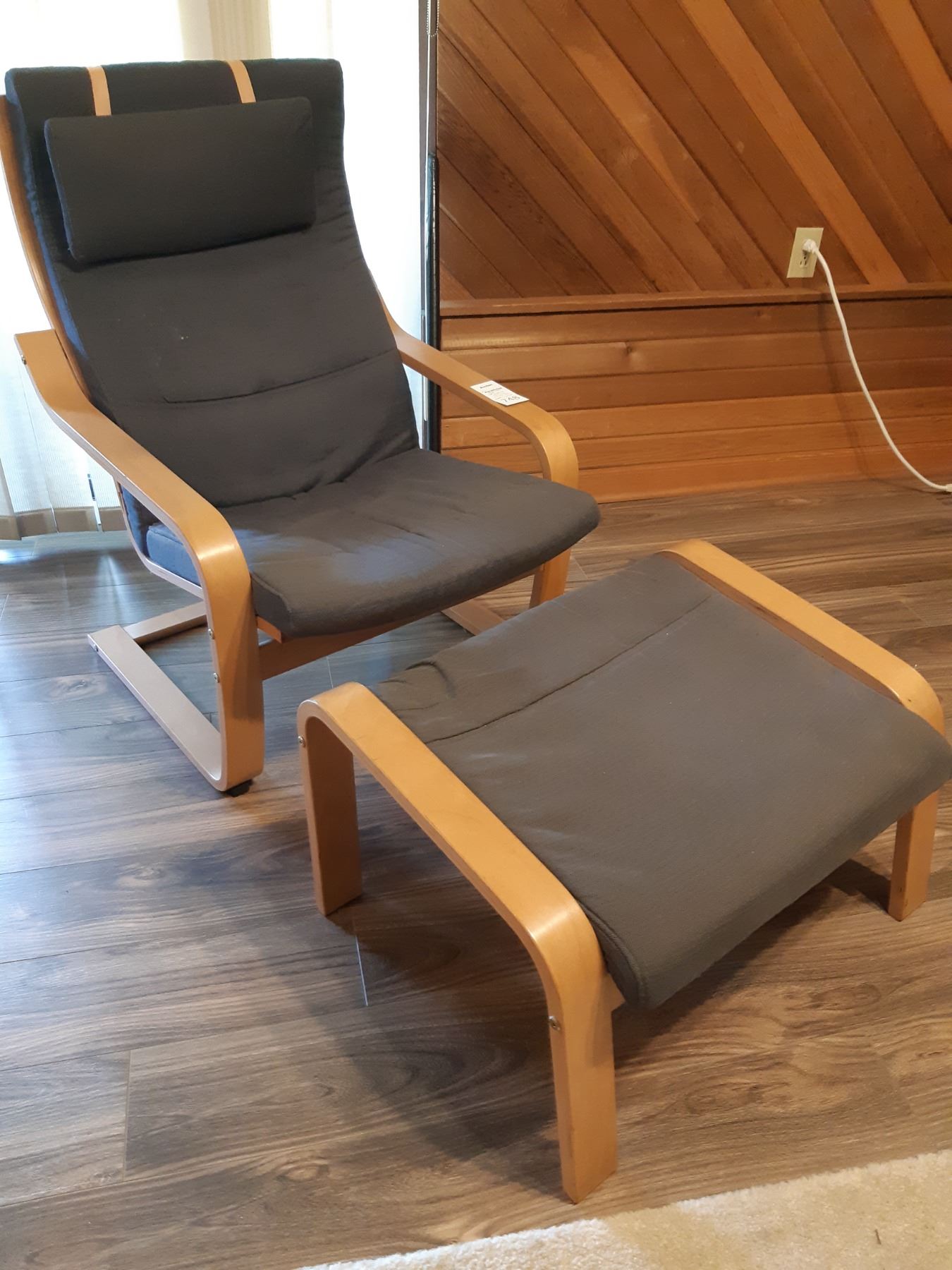 Removable cushion, 27x 30x38 and footrest 27x21x15. Note stain and scratches. Pickup at 11 am